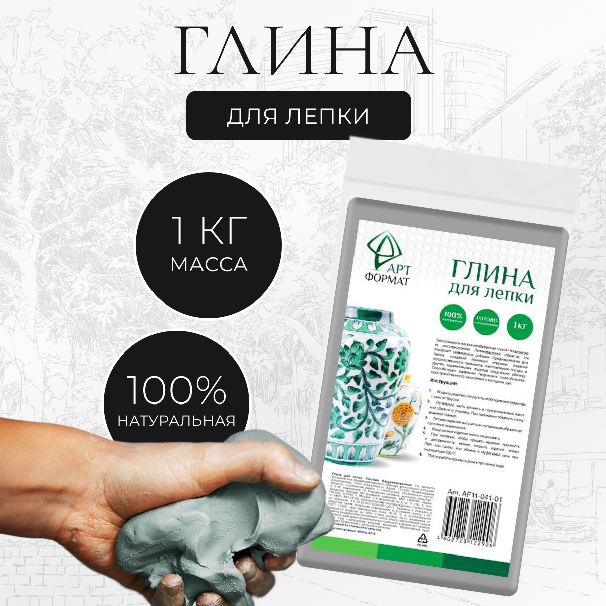 Глина Артформат д лепки голубая 1 кг вакуумированная