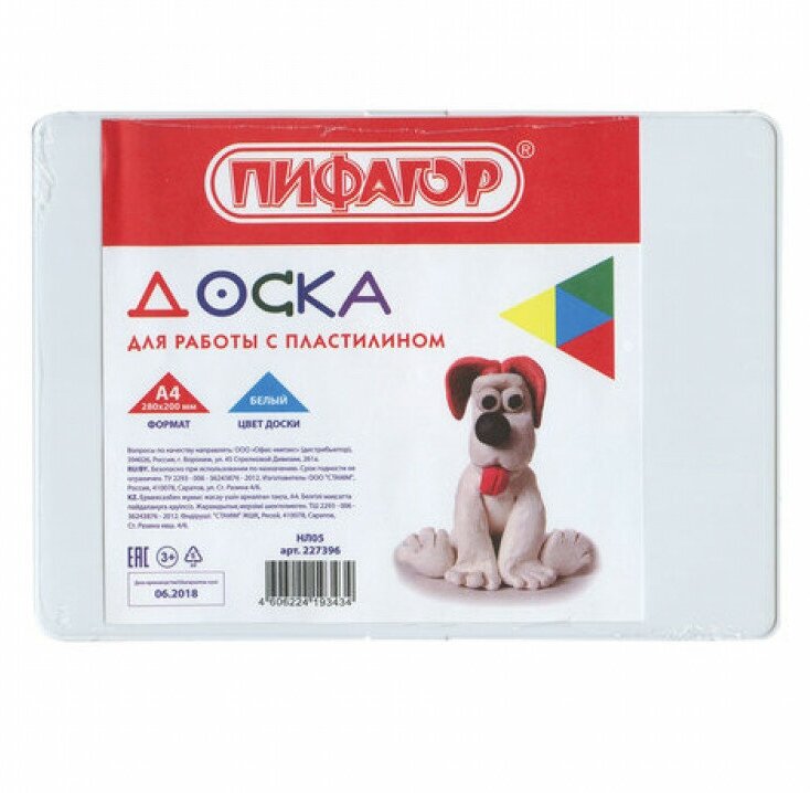 Доска для лепки А4, 280х200 мм, пифагор, белая, 227396 интересное: