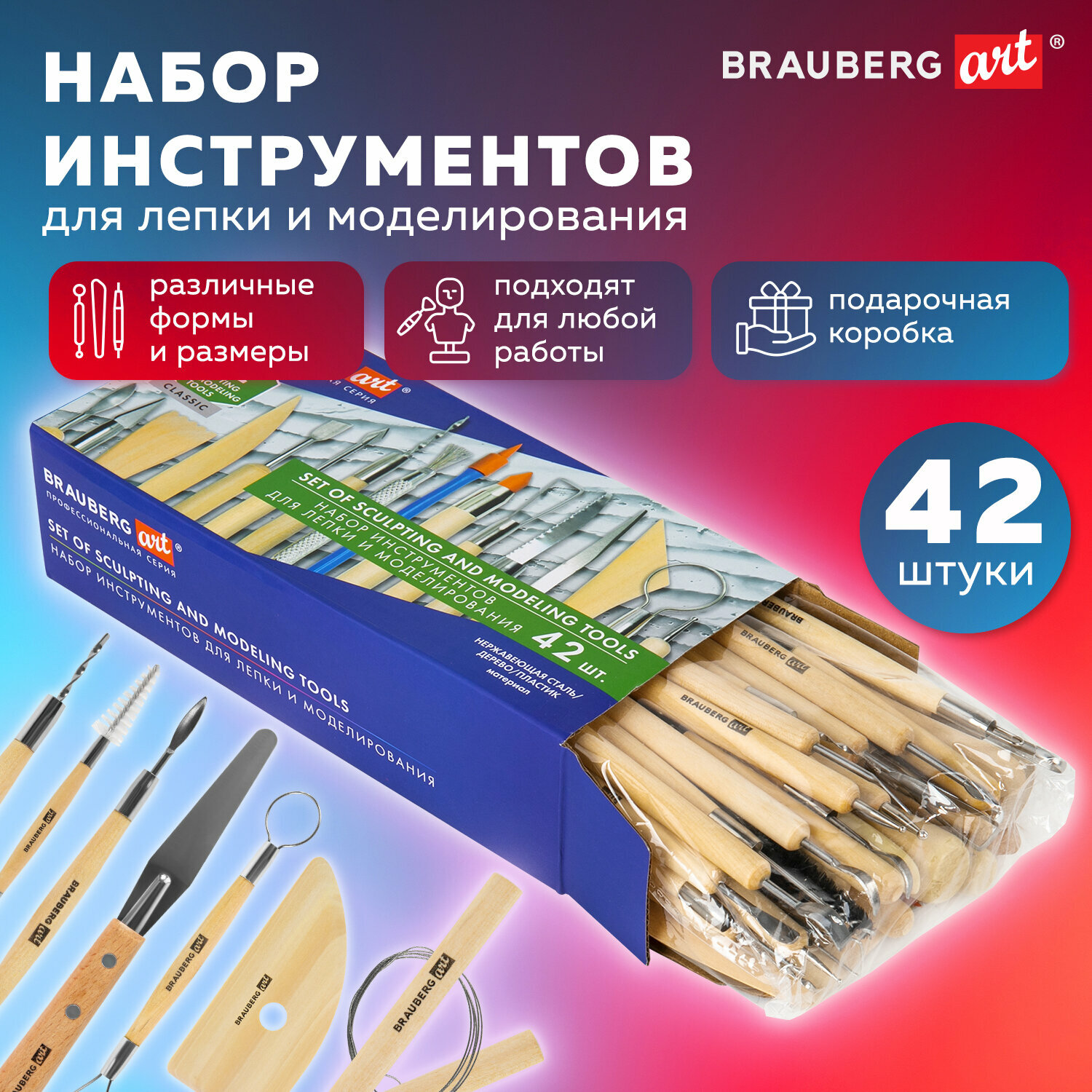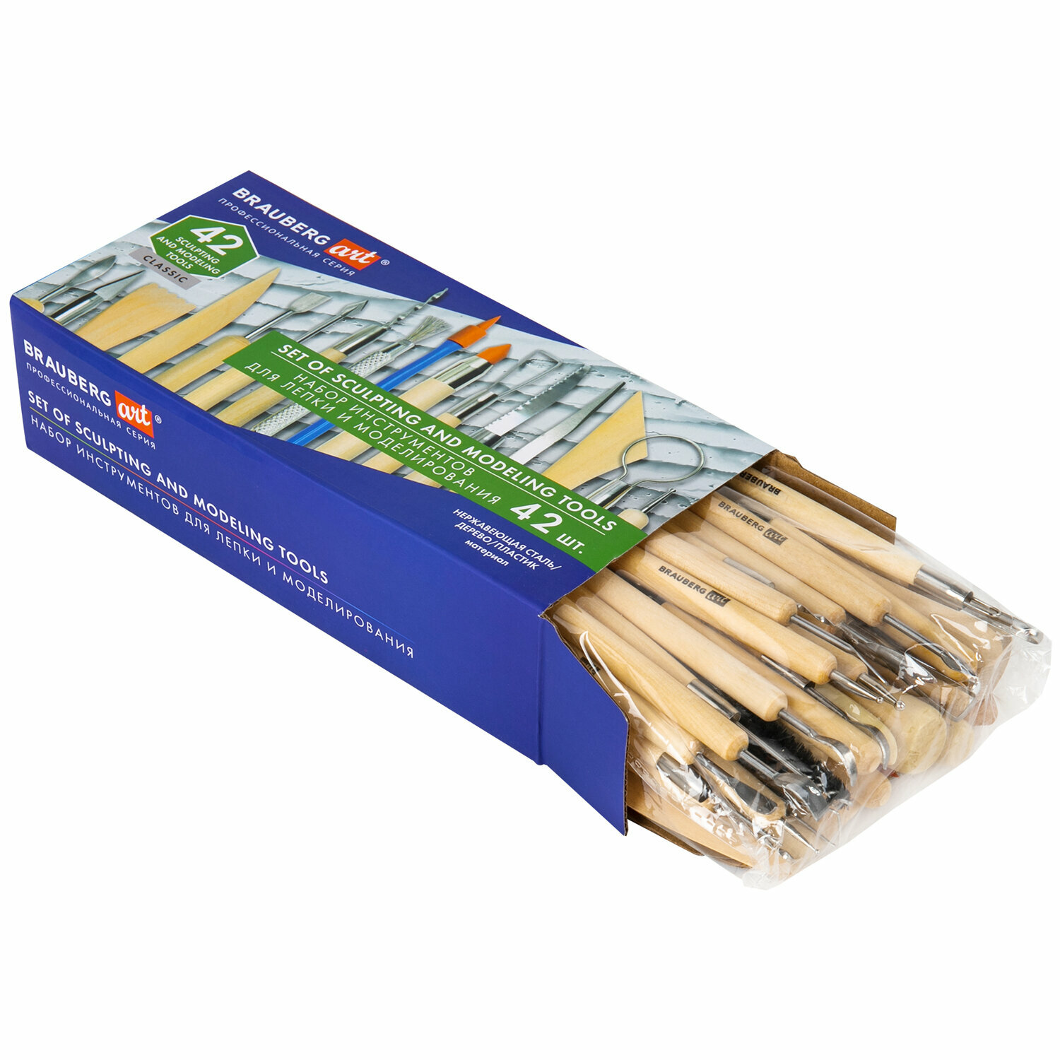 Купить Набор инструментов для лепки и моделирования из глины и пластилина 42 штуки в подарочной коробке, Brauberg Art 271175