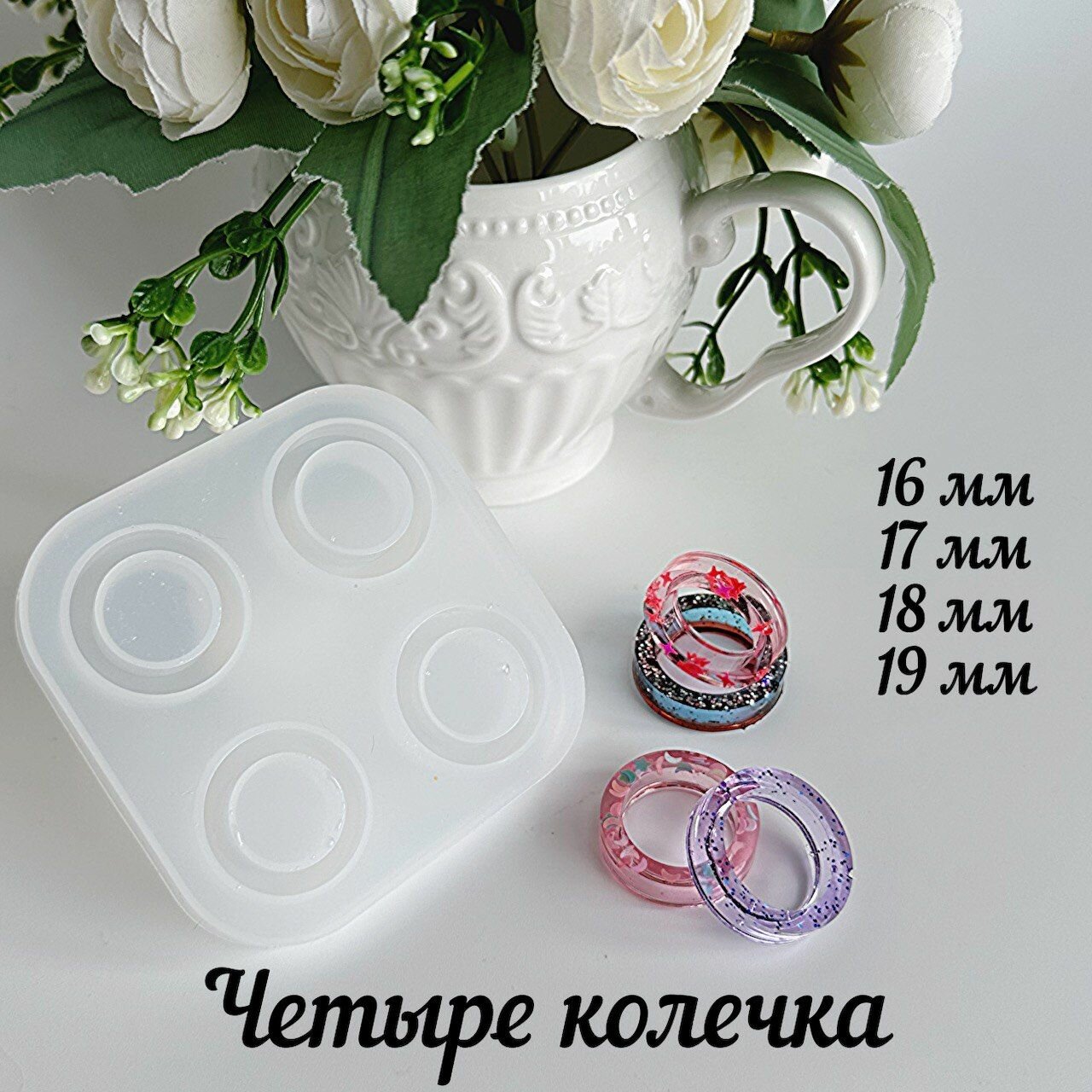 | Состав набора | Форма для заливки эпоксидкой четыре кольца |