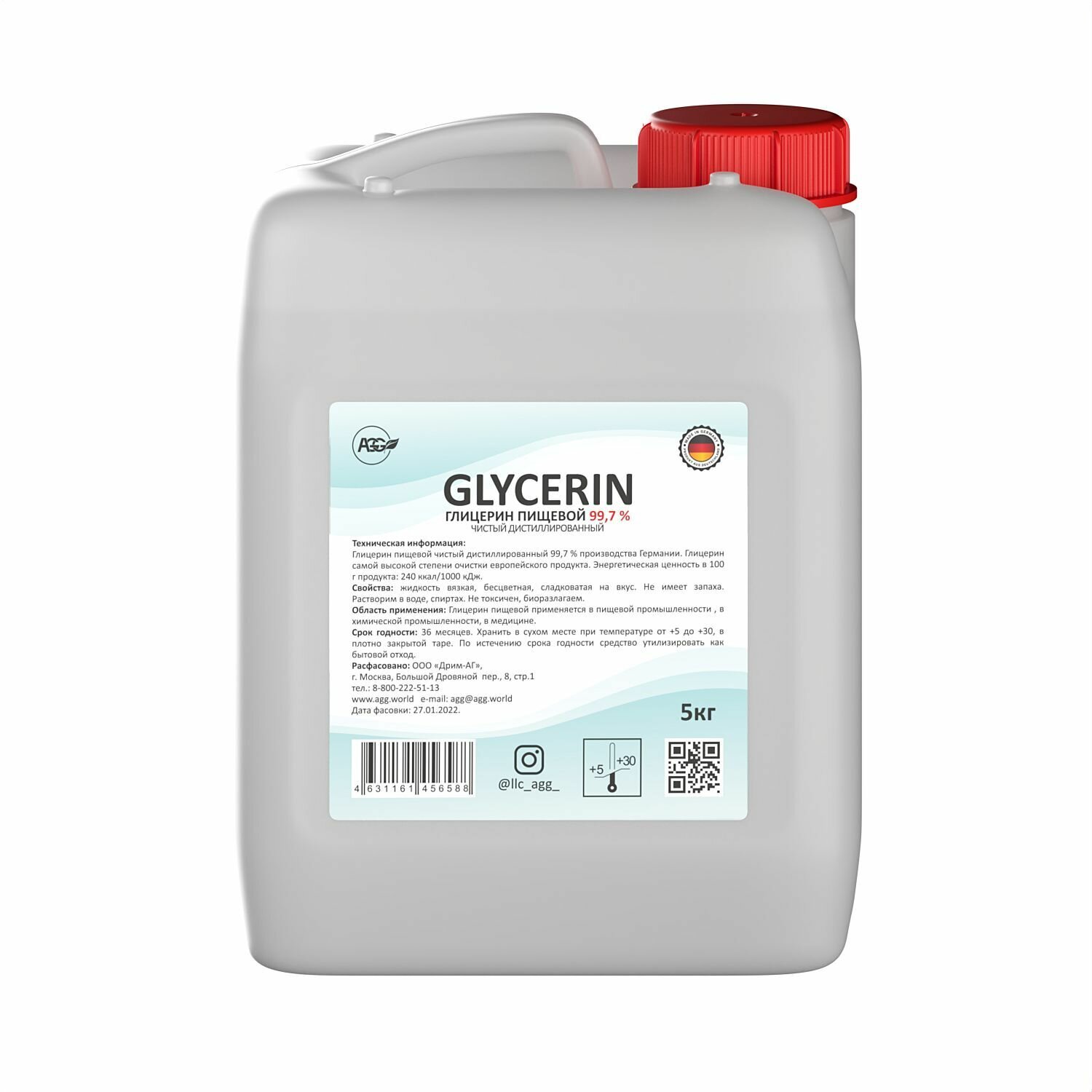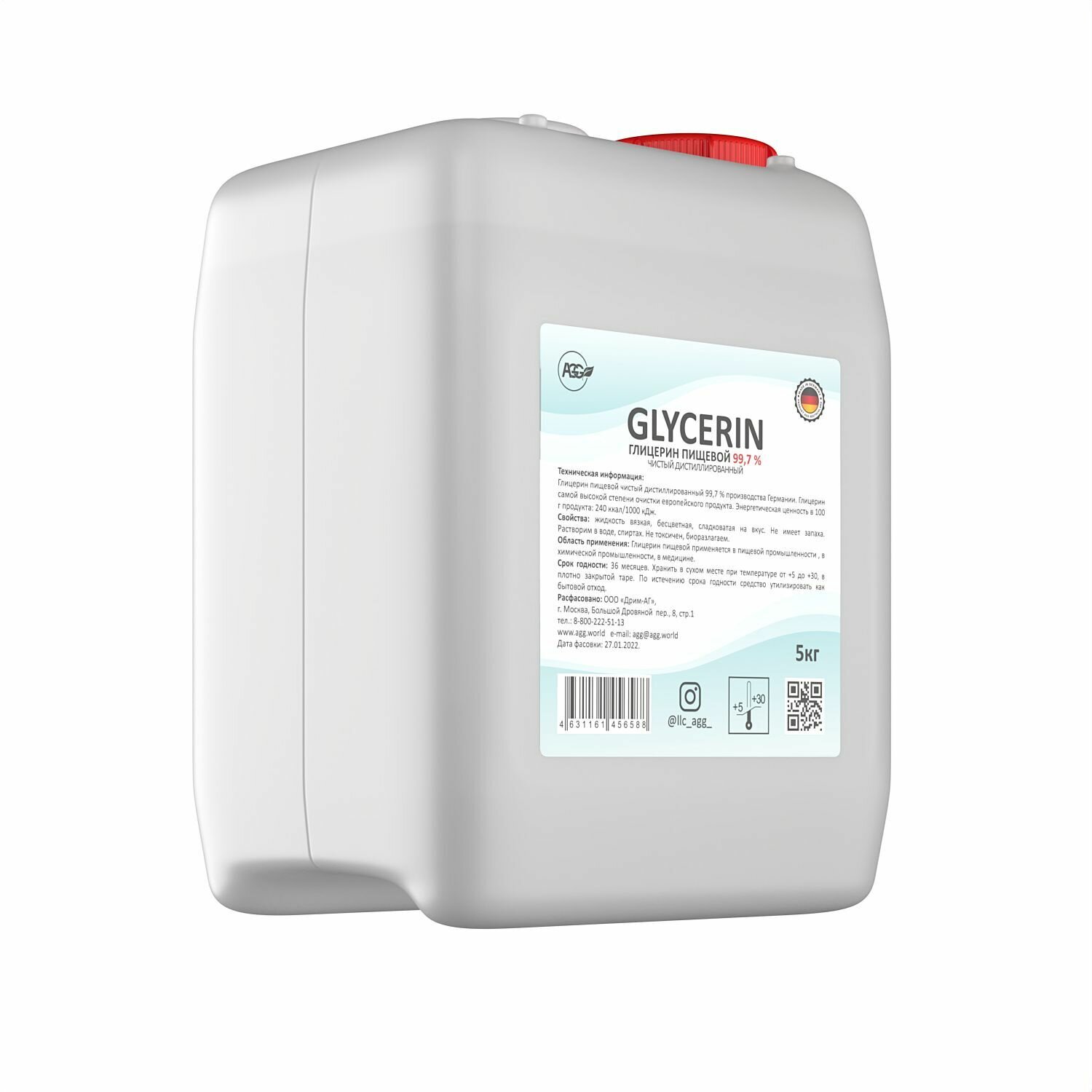 AGG / Глицерин пищевой 5 кг. AGG GLYCERIN 99,7 % чистый дистиллированный интересное: