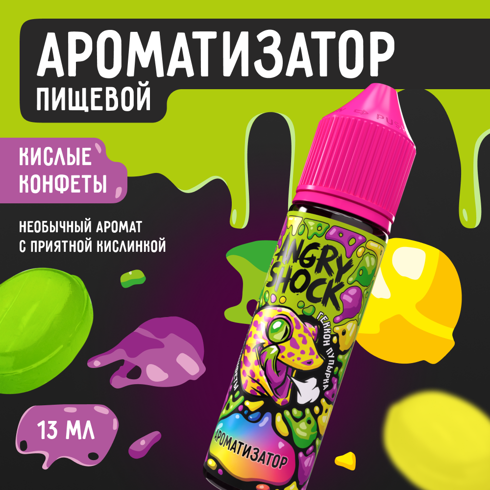 Купить Ароматизатор пищевой ANGRY SHOCK, Геккон Пупырка с ароматом кислых конфет, 13 мл.