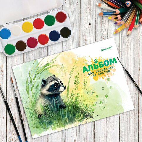 СохранитьАльбом для рисования 40 листов А4, комплект 2 штуки, скоба, обложка картон, Brauberg, 205х290 мм, Little Raccoon, 106735 интересное: