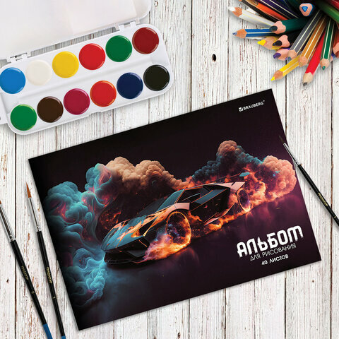 СохранитьАльбом для рисования 40 листов А4, комплект 2 штуки, скоба, обложка картон, Brauberg, 205х290 мм, В мире моторов, 106736 интересное: