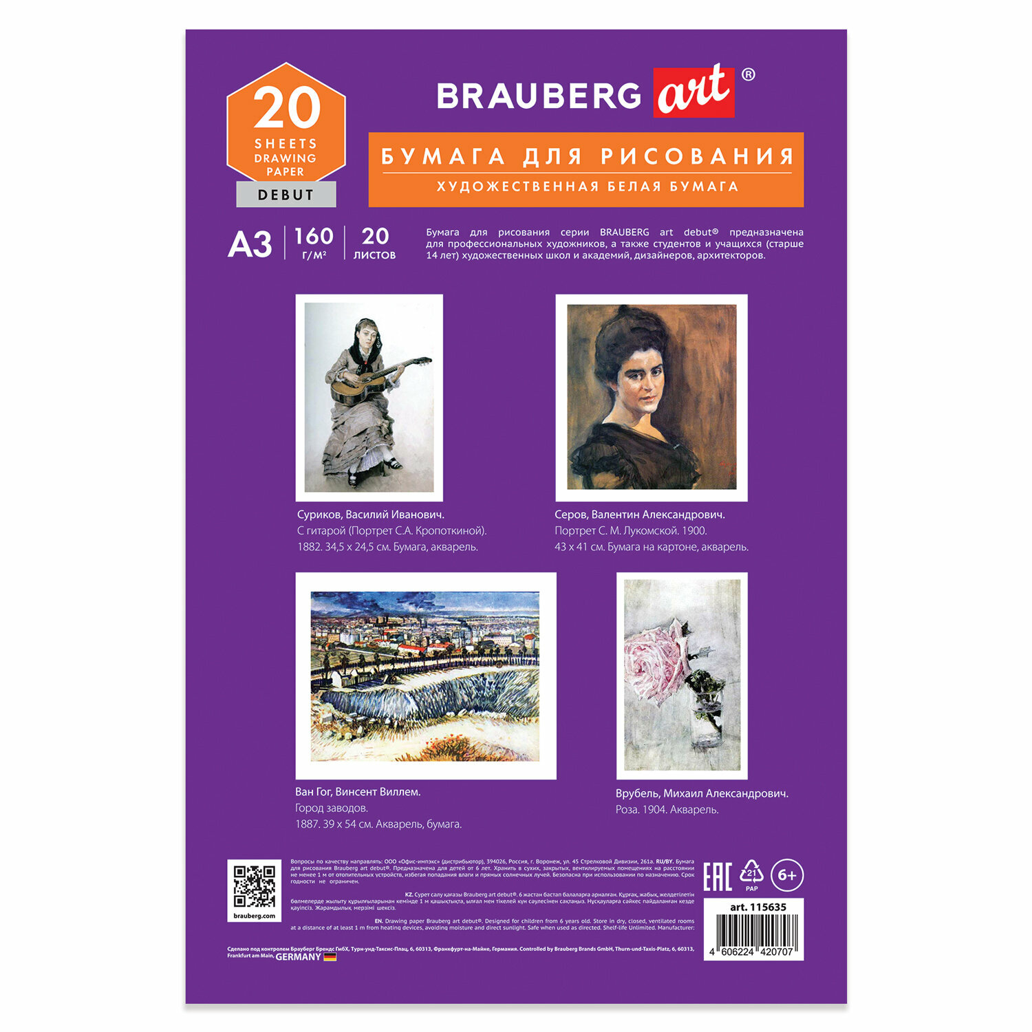 Купить Бумага А3 для рисования, черчения, скетчинга, нейрографики в папке художественная, набор 20 л для творчества и школы, 160 г м2, Brauberg Аллея, 115635