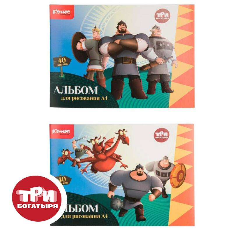 Альбом для рисования Комус Класс Три богатыря А4, 40 листов, 2 штуки