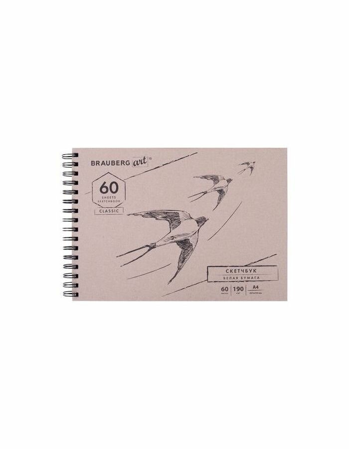 Купить Скетчбук, белая бумага 190 г/м2, 297х210 мм, 60 л., гребень, твердая обложка, BRAUBERG ART CLASSIC, 113853