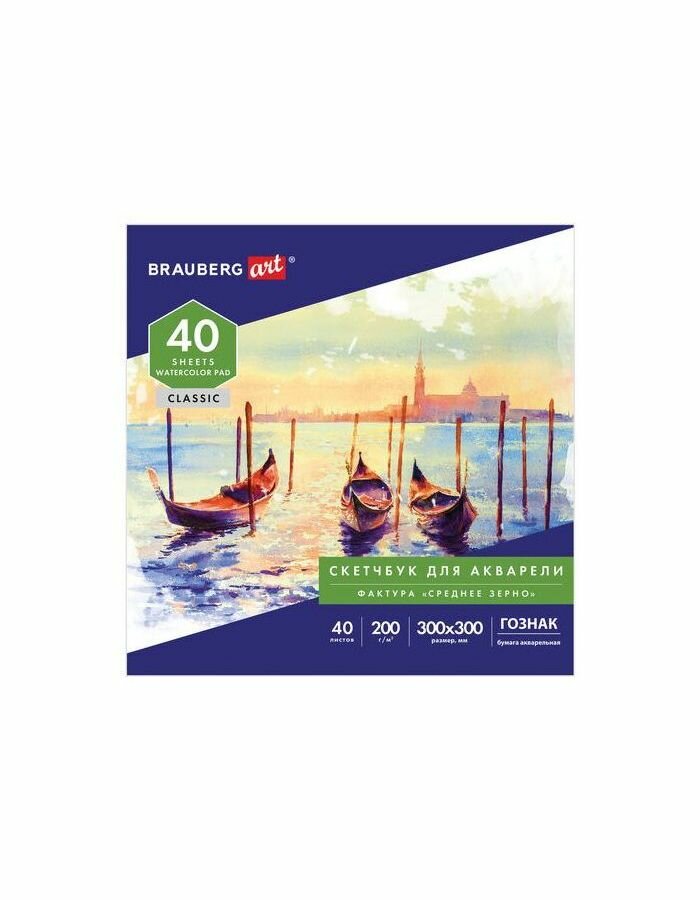 Альбом для акварели, бумага гознак СПб 200 г/м2, 300x300 мм, 40 л., склейка, BRAUBERG ART, 106143