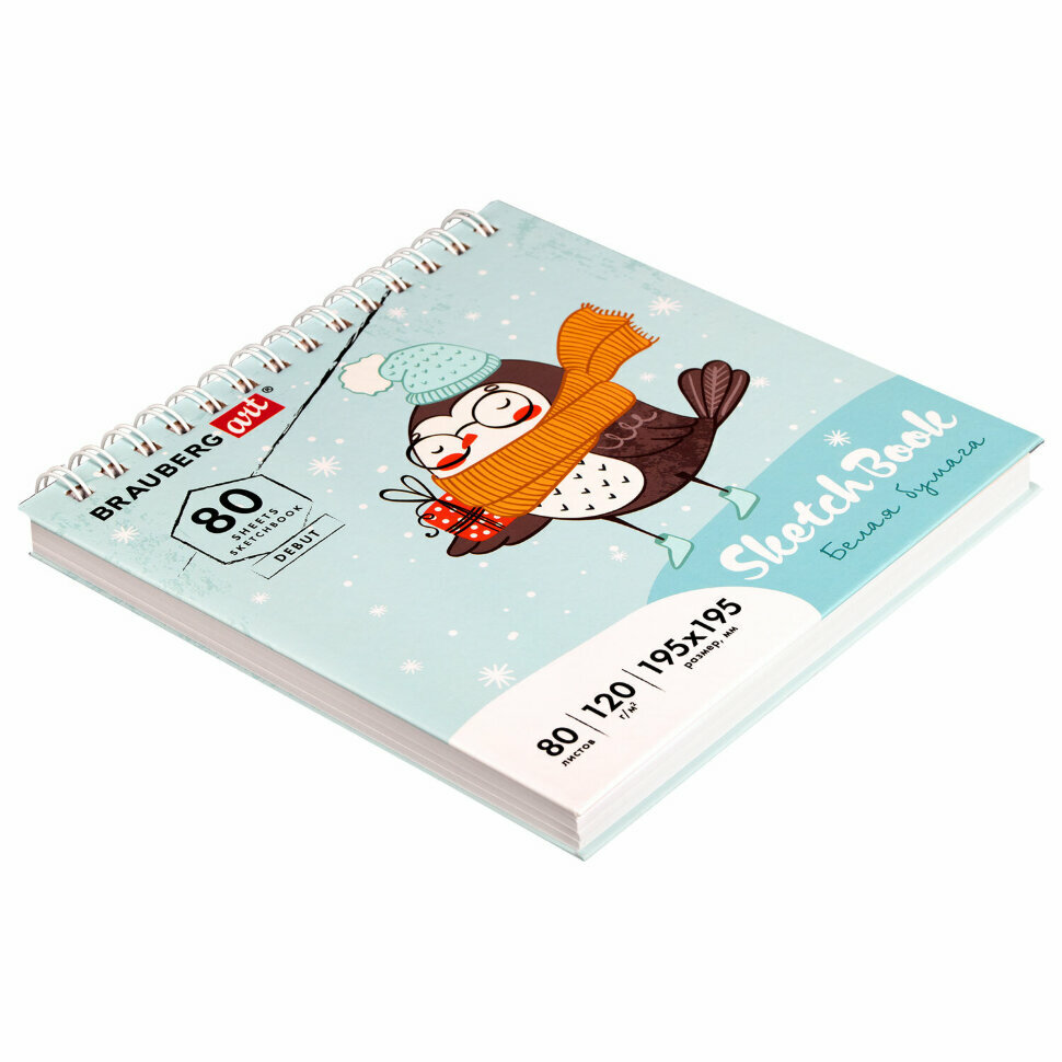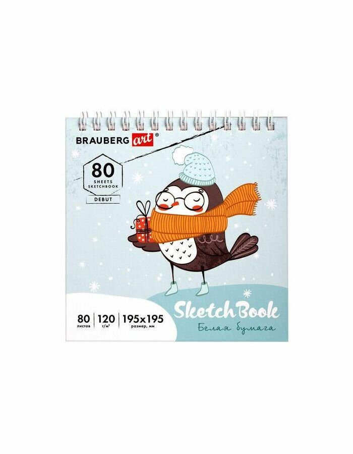 СохранитьБлокнот-Скетчбук с белыми страницами для рисования эскизов 120 г/м2 195х195 мм, 80 л., гребень, твердая обложка, Brauberg Art Debut интересное: