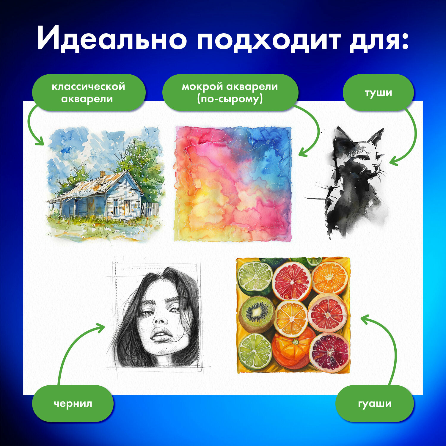 | Назначение | для акварели / для гуаши / для карандаша / для маркеров / для пастели / для фломастера |