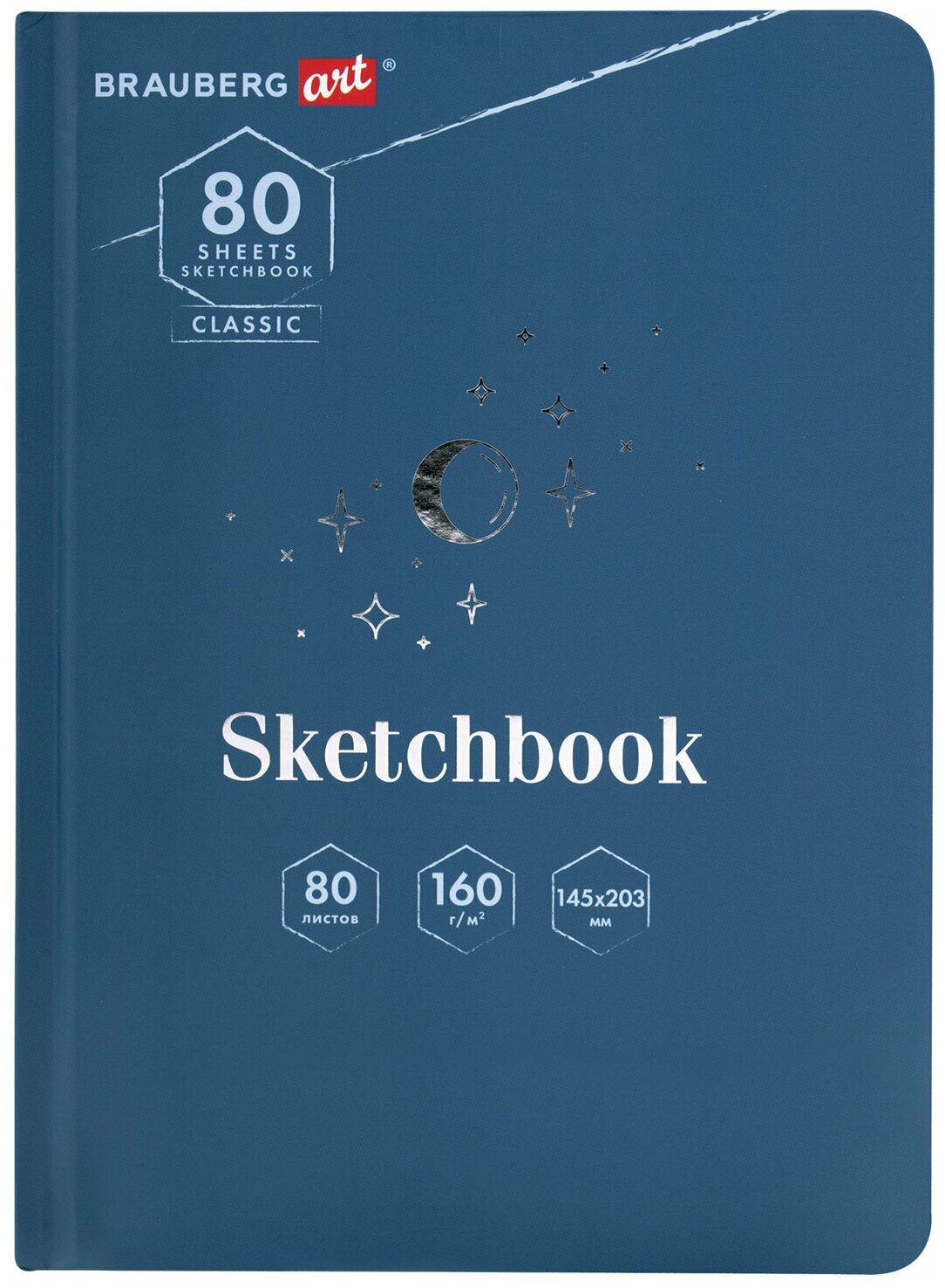Купить Блокнот-Скетчбук с белыми страницами для рисования эскизов 160 г/м2, 145х203 мм, 80 листов, твердая обложка, Brauberg Art Classic Ночь, 114593
