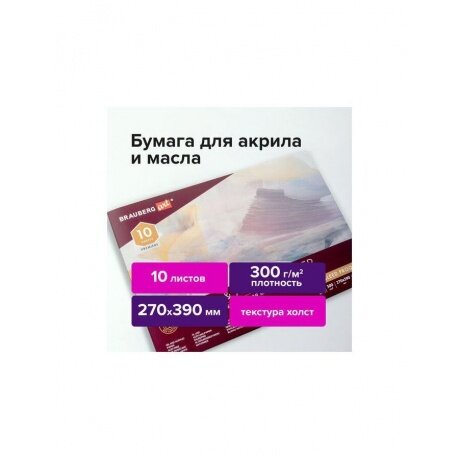 Купить Альбом / бумага художественная для рисования маслом и акрилом 300 г/м2, 270х390 мм, 10 листов, склейка, тиснение холст, Brauberg Art Premiere