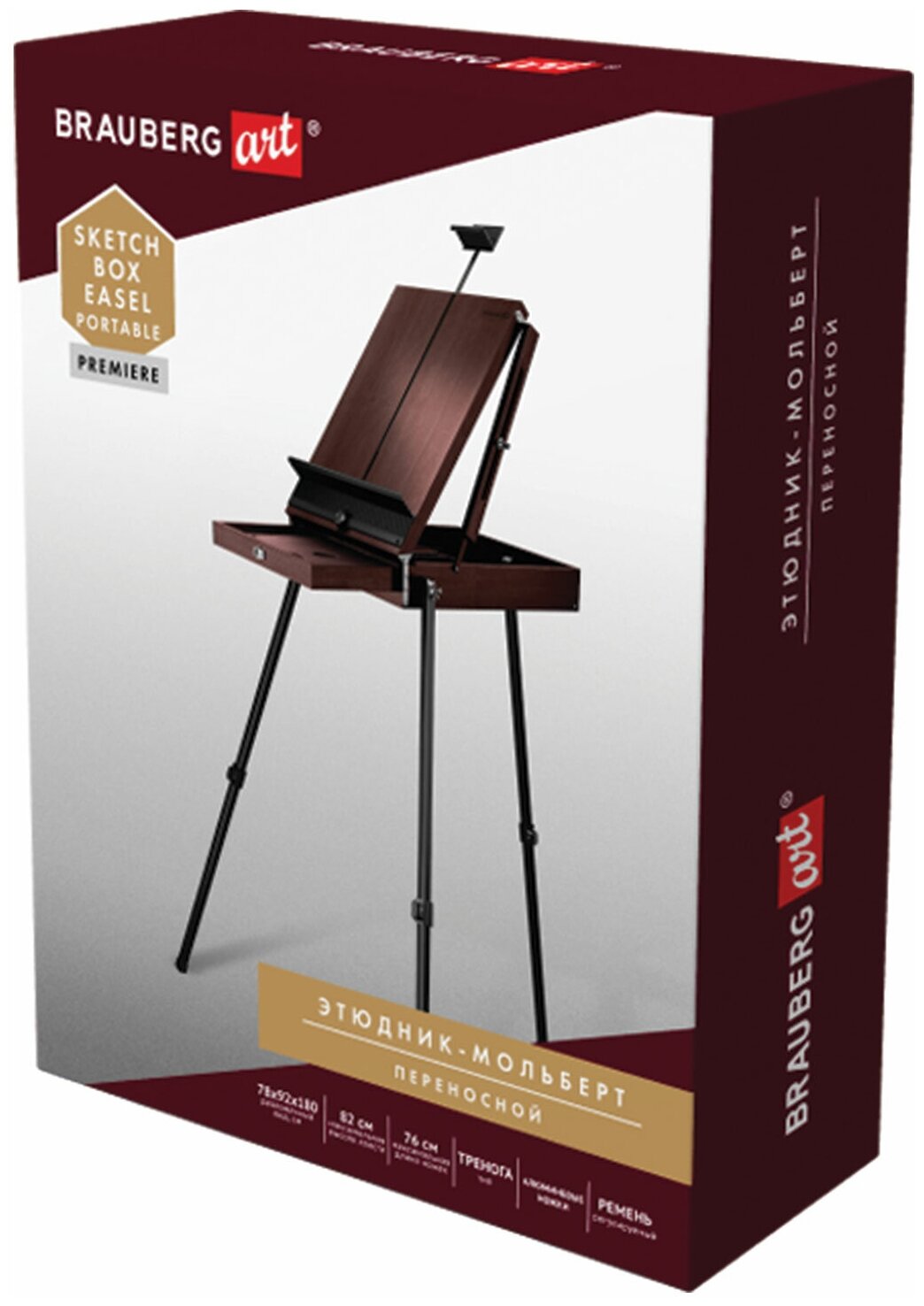 Этюдник мольберт BRAUBERG ART PREMIERE, алюминиевые ножки, холст до 82 см, кофейный,191757 интересное: