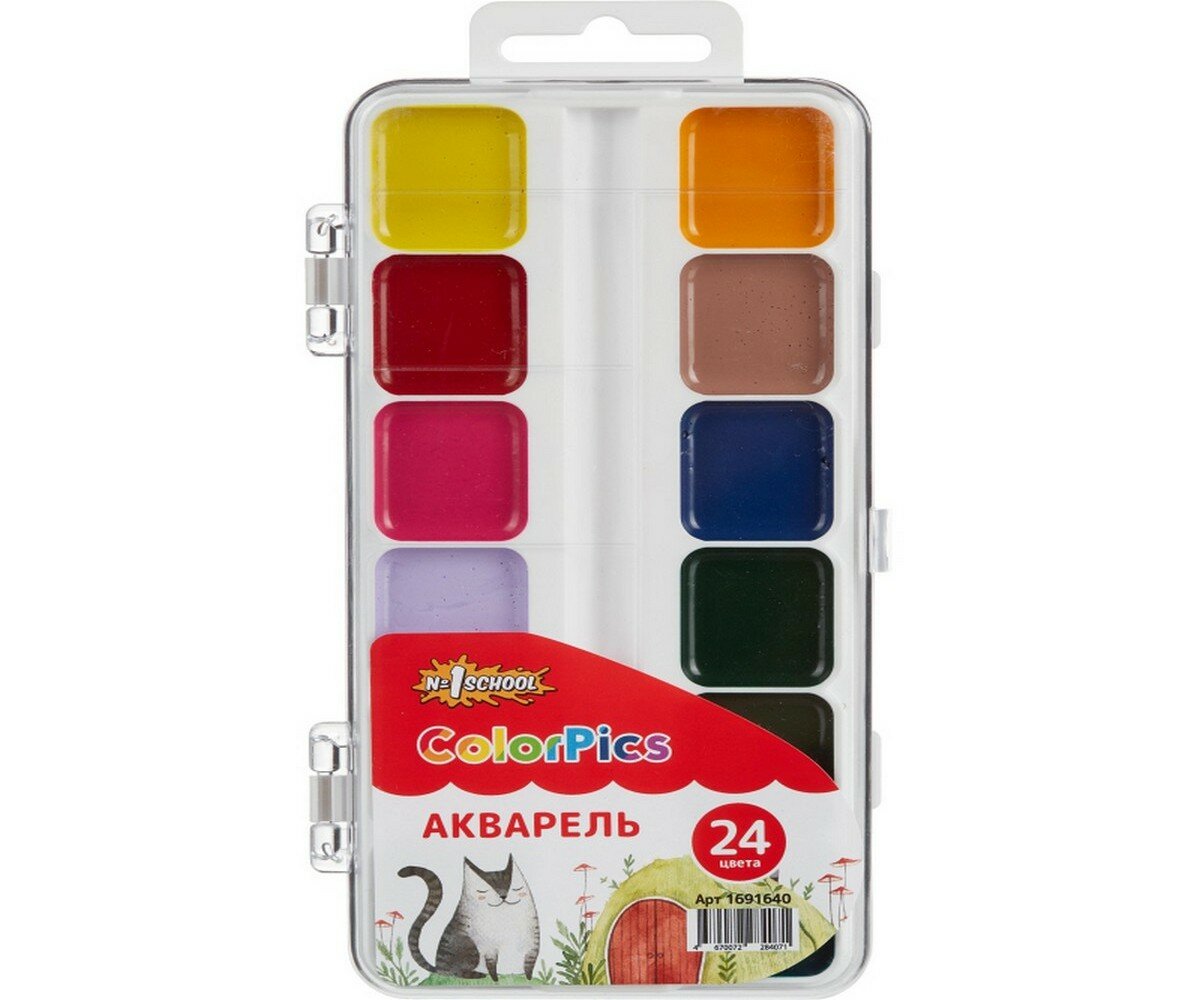 Краски акварельные №1 School ColorPics набор 24 цв б/кисти пластик