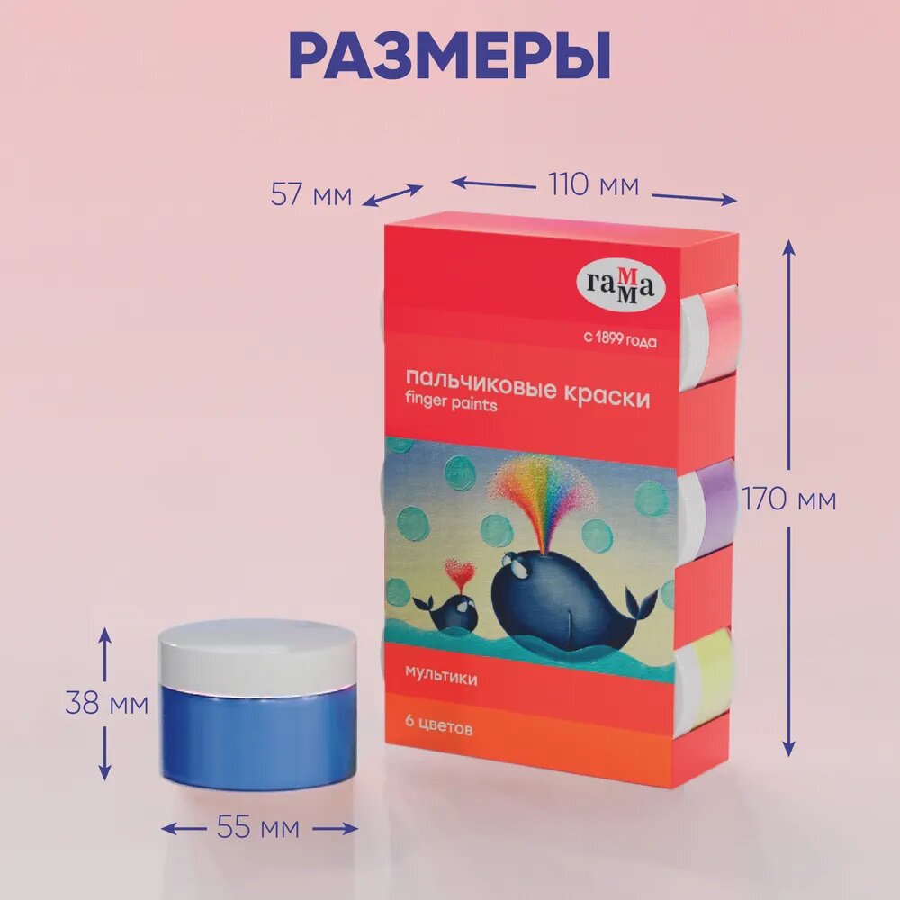 | Комплектация | Краски для рисования Гамма, Мультики , пальчиковые, детские, 6 цветов по 50 мл, 1 уп |