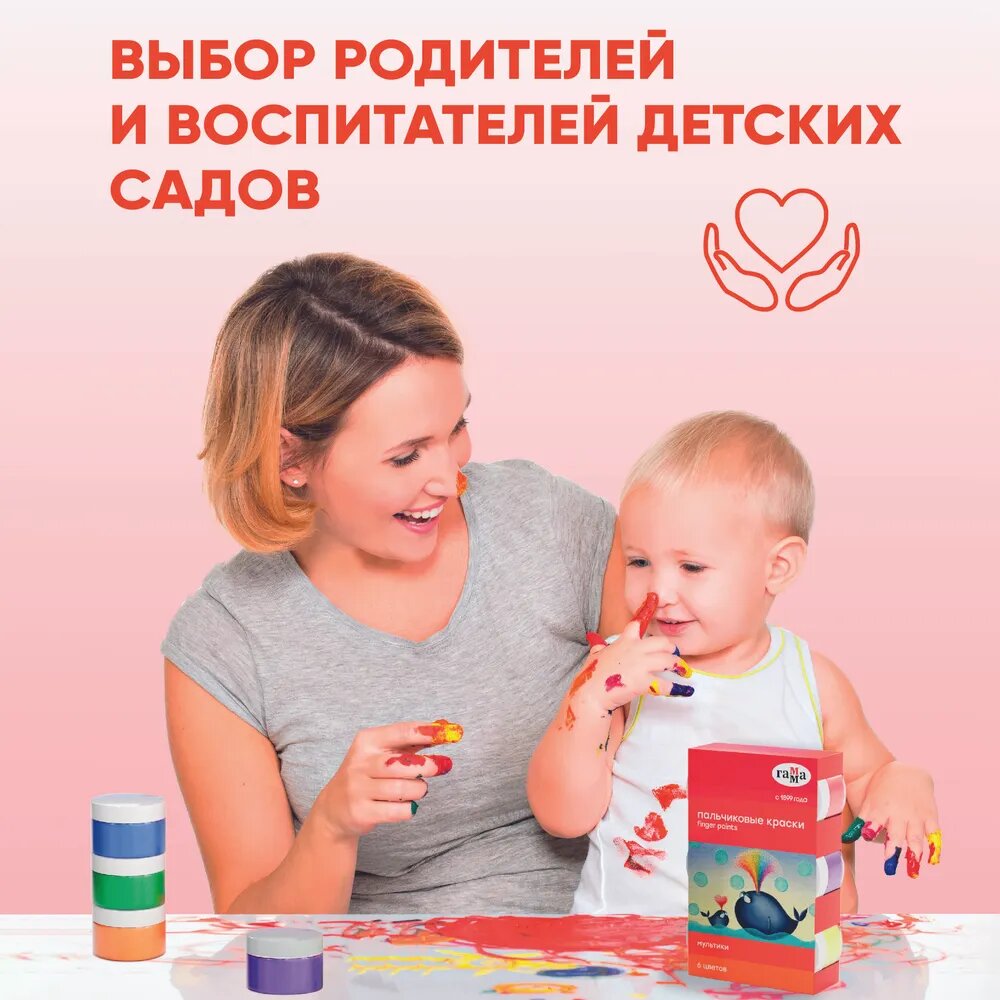 Пальчиковые краски для малышей Гамма "Мультики" 6 цветов в наборе, съедобные, без кисти, в картонной упаковке