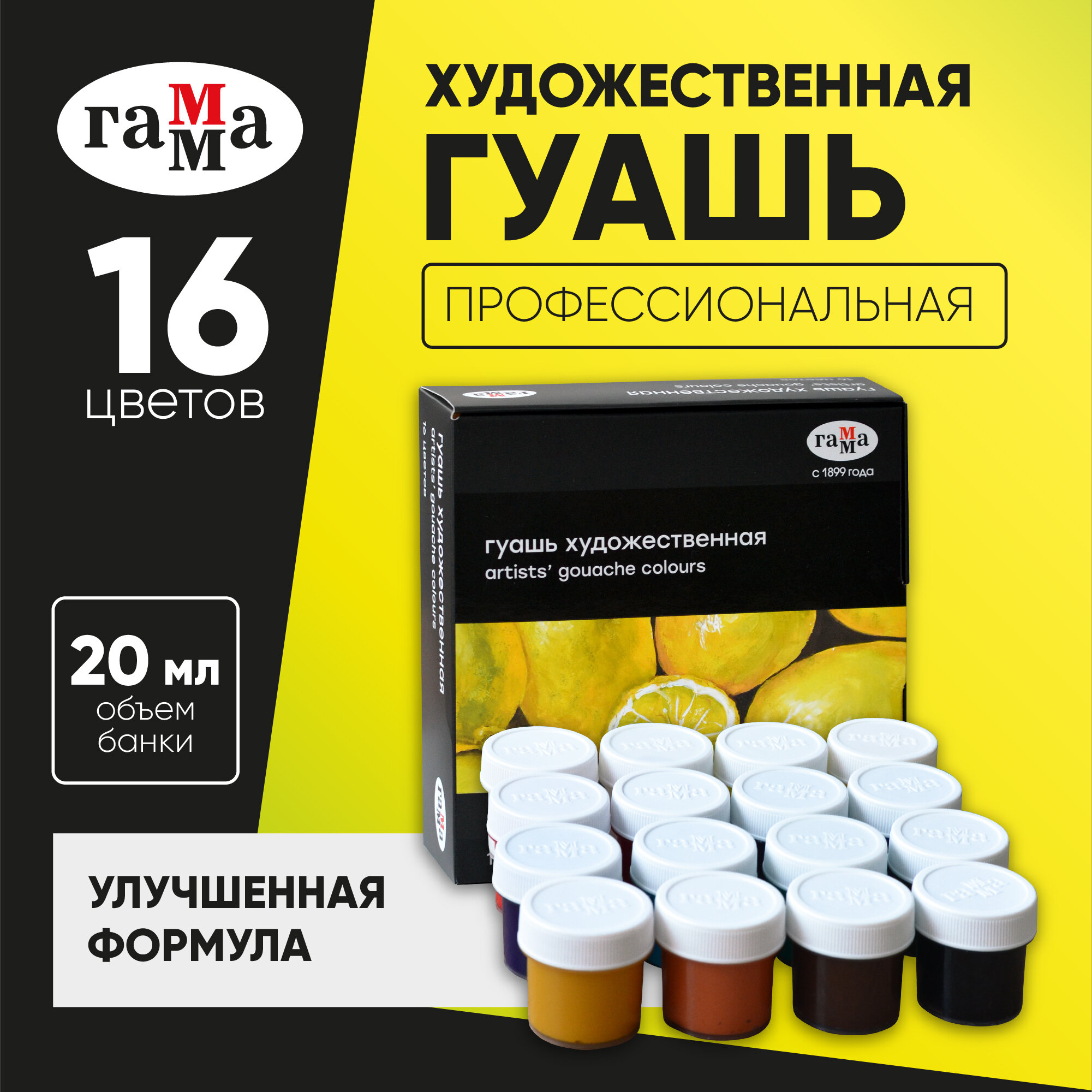 Гуашь художественная Гамма "Старый мастер", 16 цветов, 20мл/банка