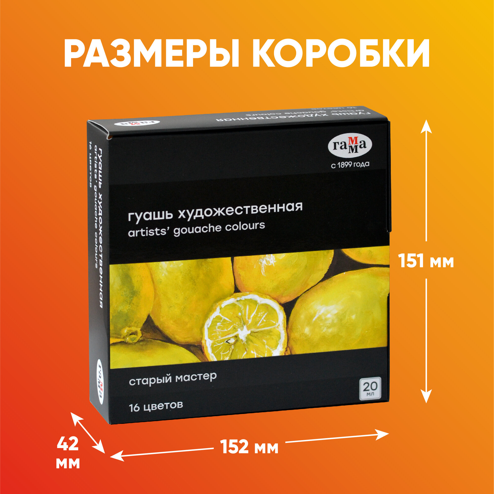 Гуашь художественная Гамма "Старый мастер", 16 цветов, 40мл, картон. упаковка
