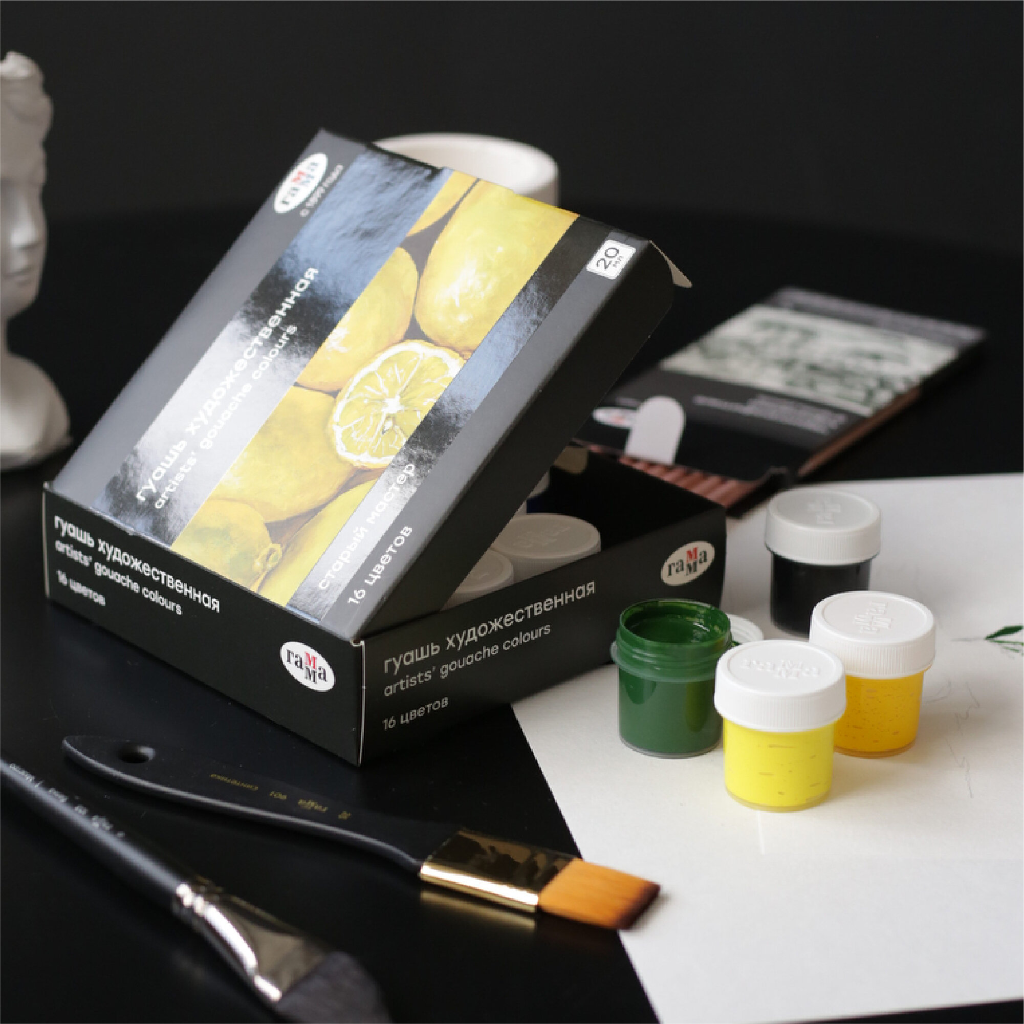 Гуашь Гамма "Старый мастер" профессиональная, краска художественная для рисования, 16 цветов в баночках по 40 мл / Набор для живописи и творчества