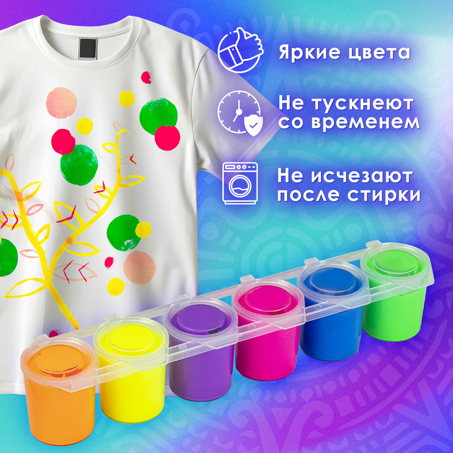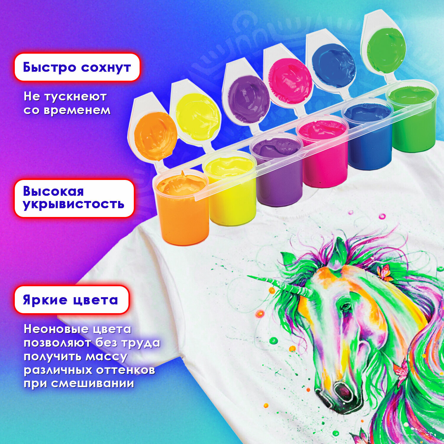 Краски акриловые по ткани неон остров сокровищ 6 цветов по 25 мл, 191697 интересное: