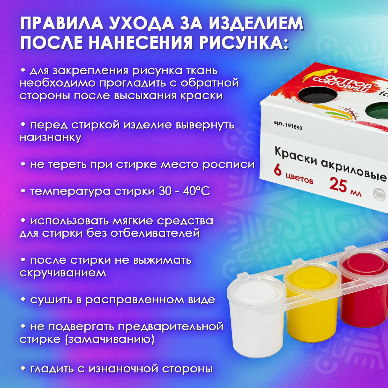 Краски акриловые по ткани остров сокровищ 6 цветов по 25 мл, 191693 интересное: