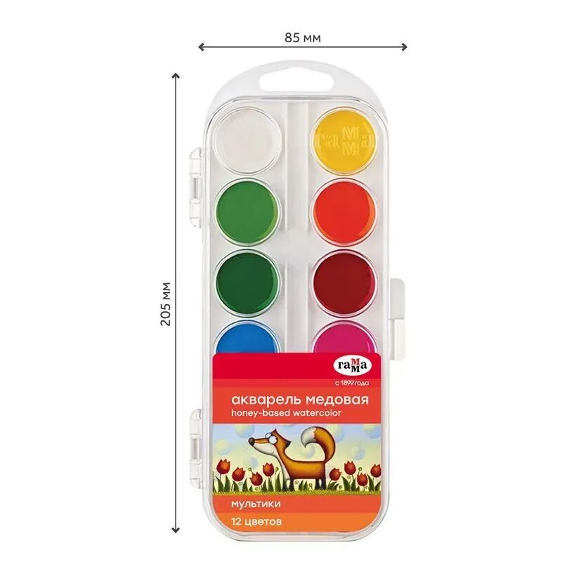 Акварель Гамма "Мультики", медовая, 12 цветов, без кисти, пластик. упак., европодвес NEW (2шт) интересное:
