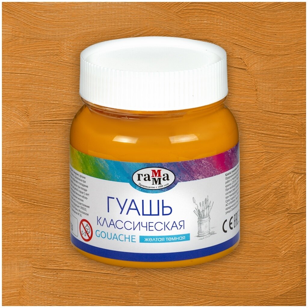 Гуашь 220 мл желтая темная Гамма "Классическая", 1 упаковка