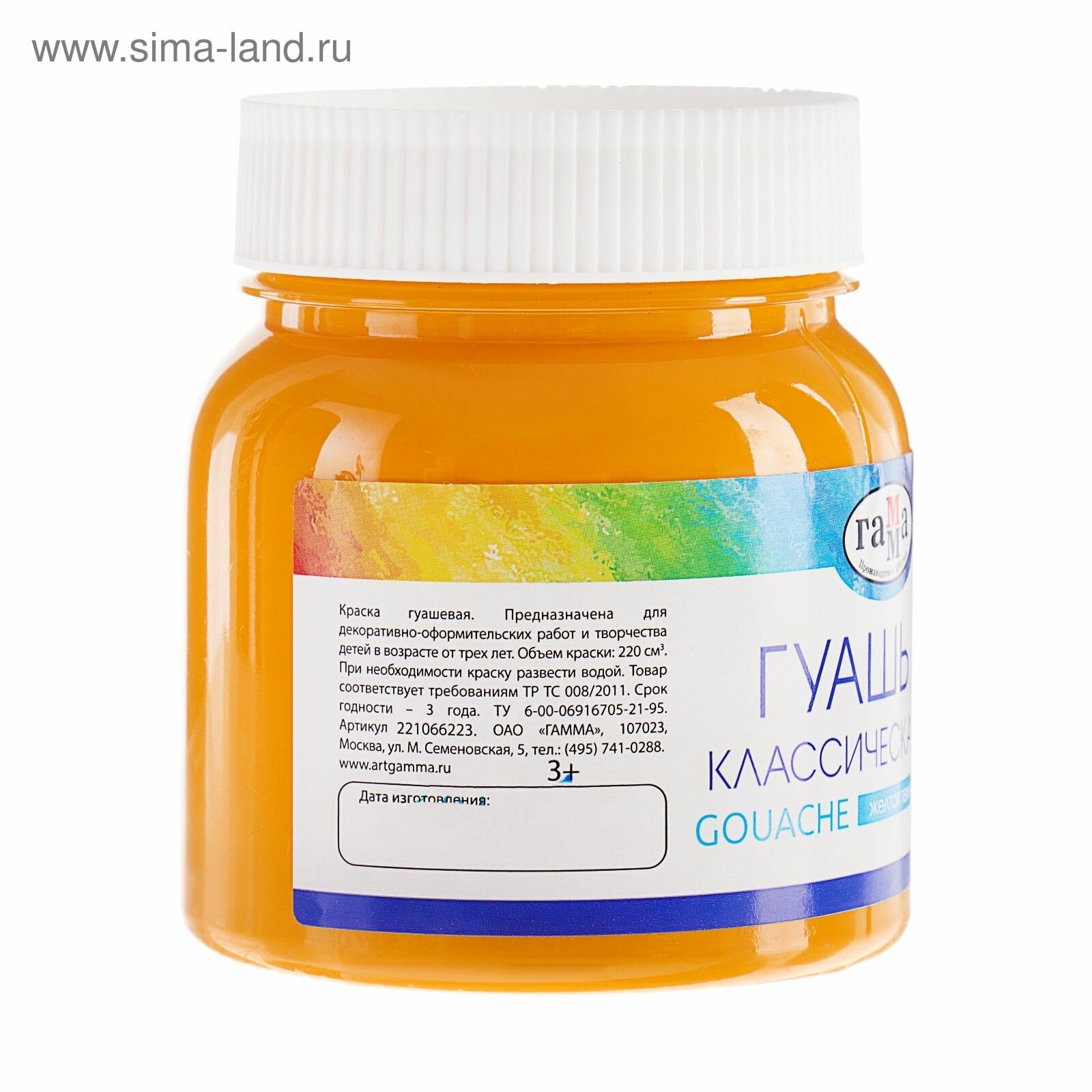 Гуашь Классическая 220мл Белила Цинковые 221066222 /гамма/