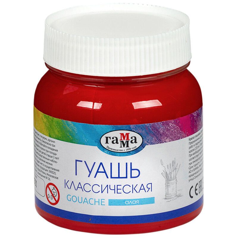 Гуашь Гамма "Классическая", алая, 220мл, 265722
