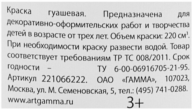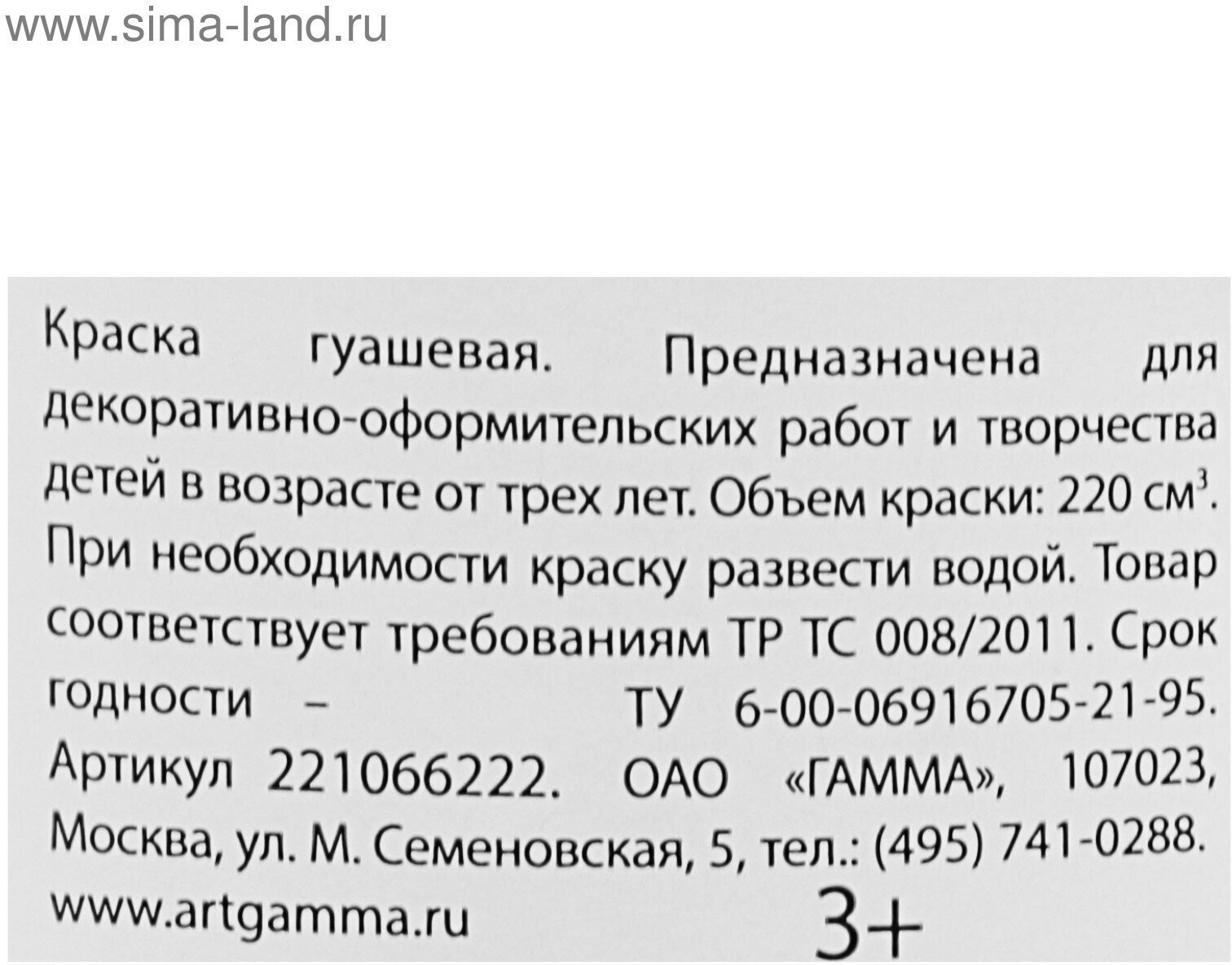 Гуашь Классическая 220мл Белила Цинковые 221066222 /гамма/