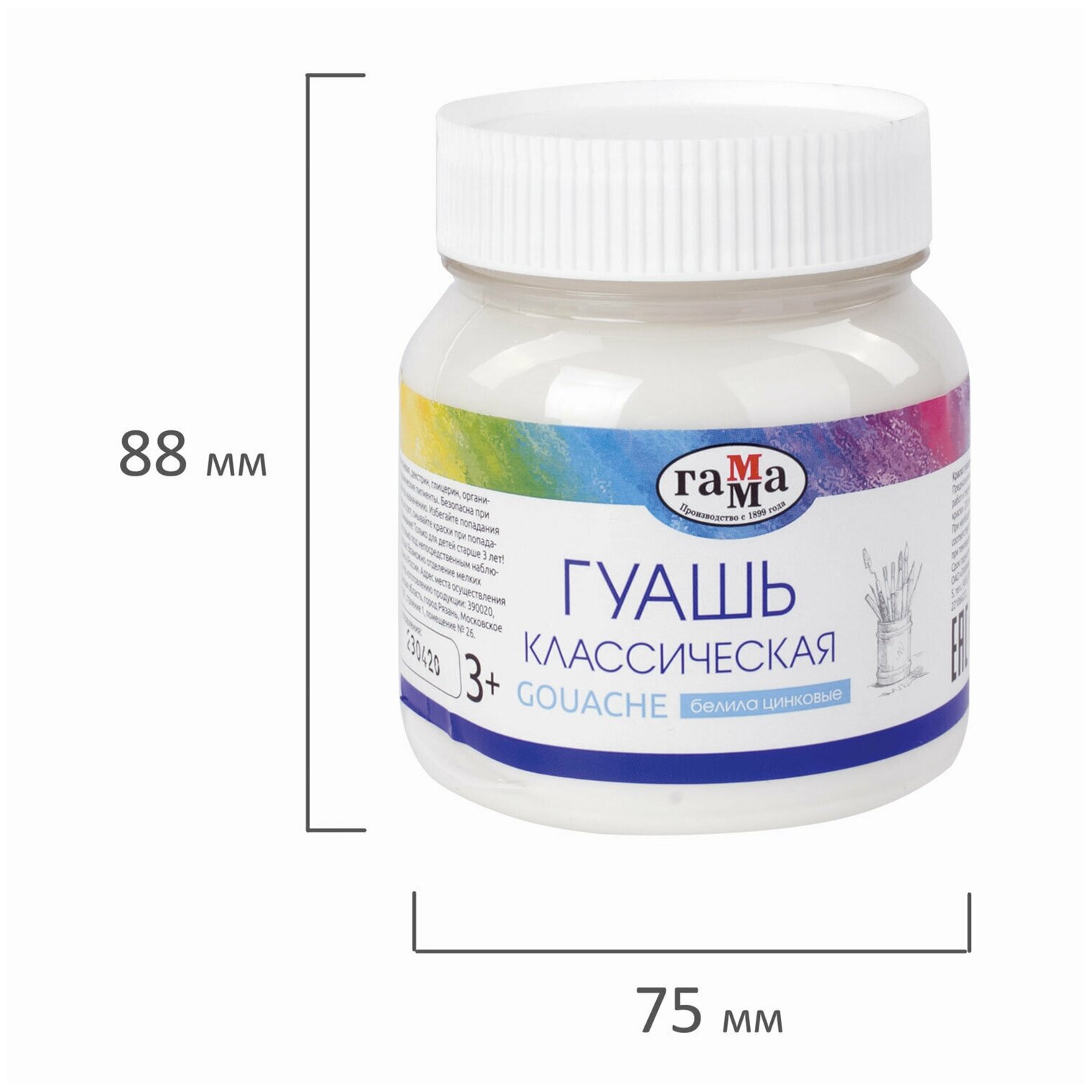 Гуашь для школы белая (белила титановые) / Краски для рисования детские Гамма "Классическая" в баночке / Набор красок для творчества и хобби детей