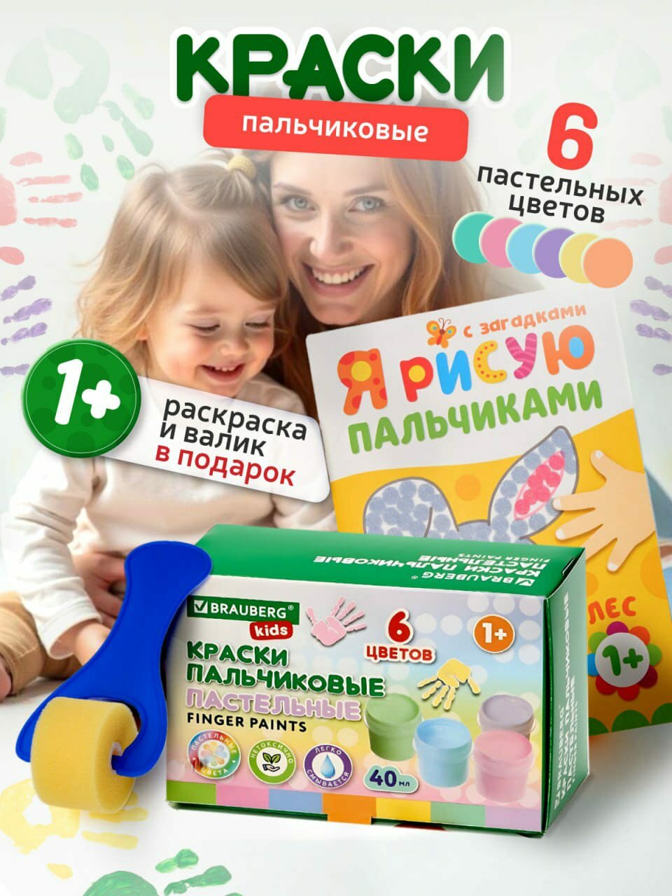 Купить Краски пальчиковые 6 цветов для рисования и творчества для детей малышей от 1 года + раскраска пальчиковая + валик для рисования