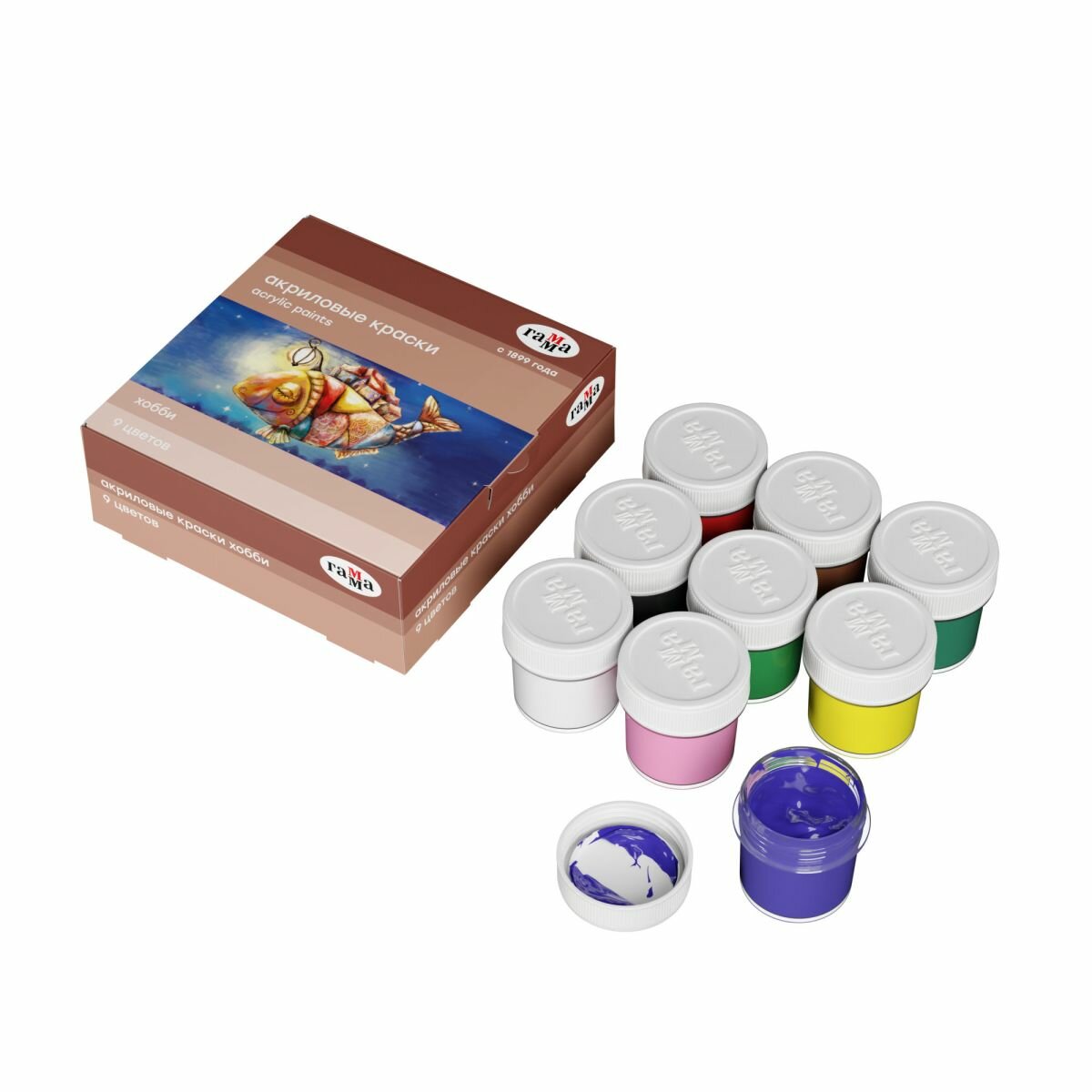 Краски акриловые декоративные Гамма "Хобби", 9 цветов, 20мл
