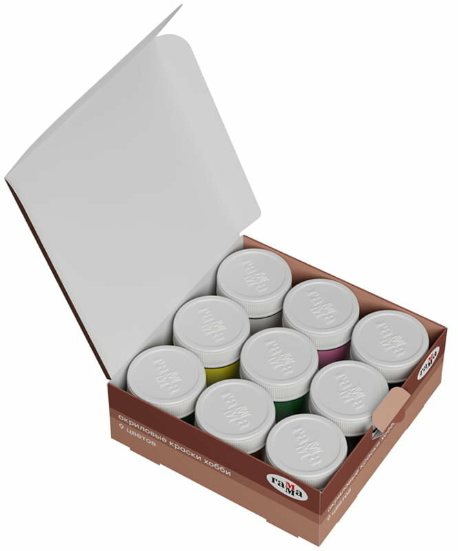 Комплект 9 шт, Краски акриловые декоративные Гамма "Хобби", 09 цветов, 20мл, картон. упаковка