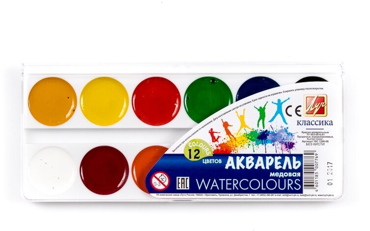 | Комплектация | 1 набор акварельных красок на 12 цветов |