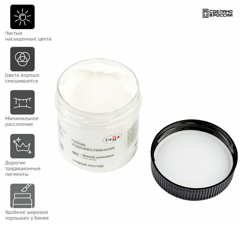 Сохранить1 шт - Гуашь художественная Гамма "Старый Мастер", белила цинковые, 110мл интересное:
