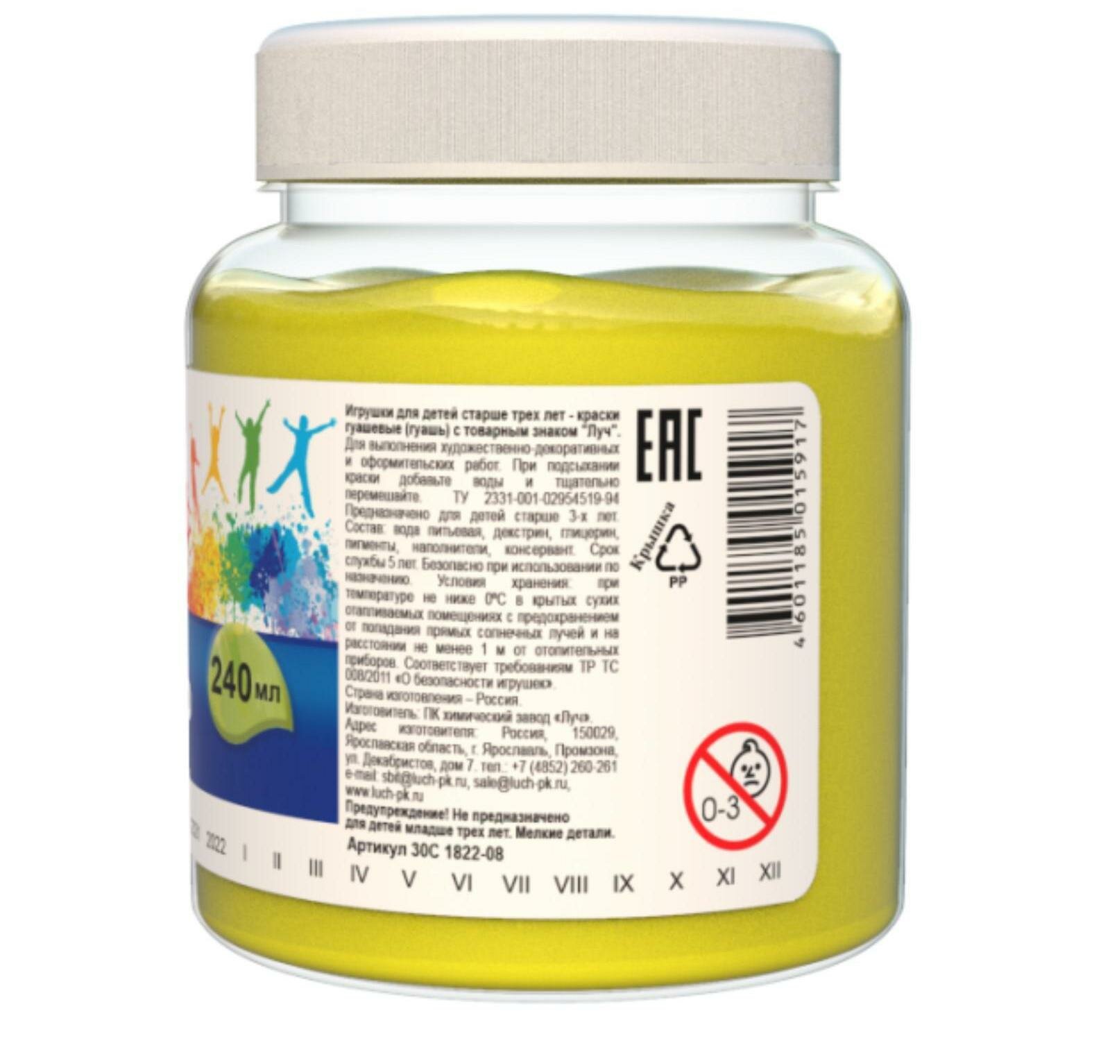 Гуашь художественная 1 шт. ЛУЧ "Классика", 240 мл, лимонная, 30С 1822-08