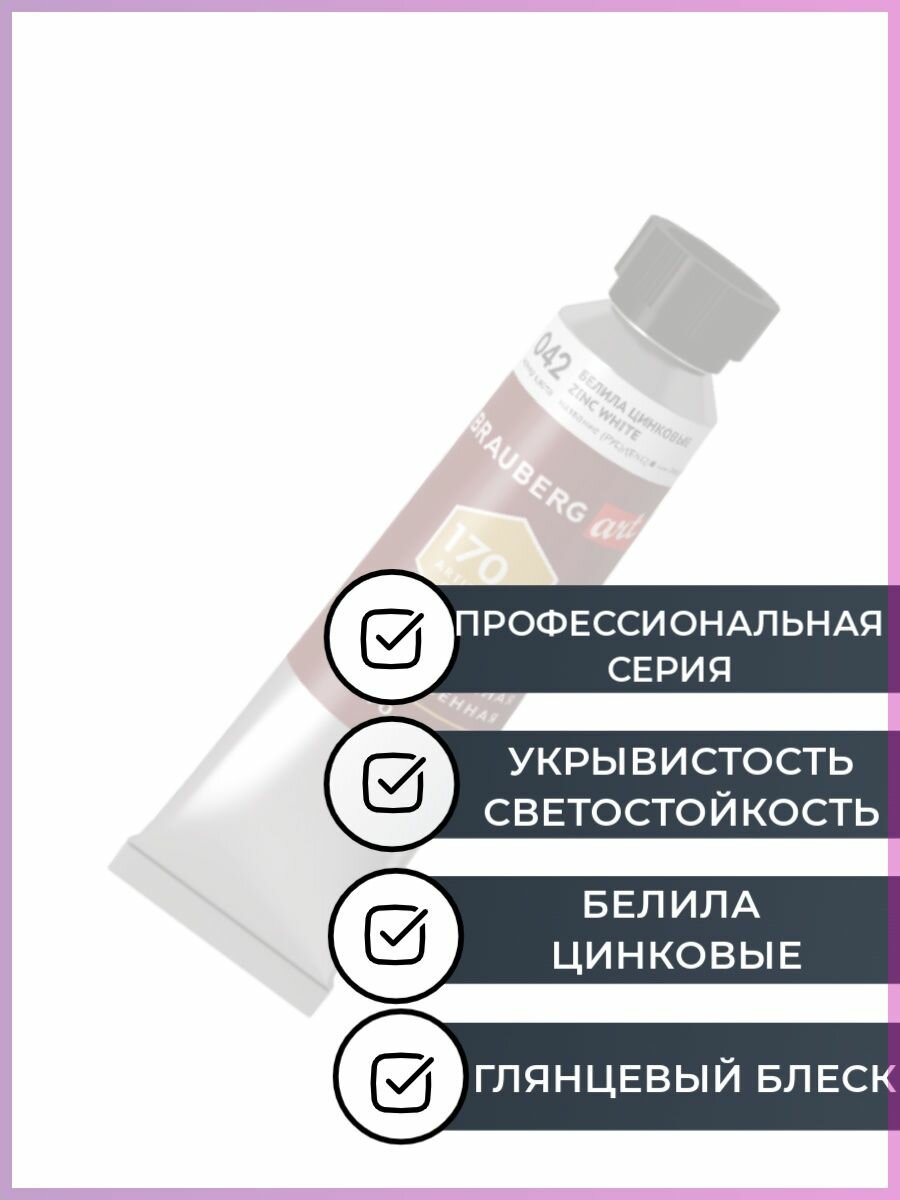 Краска масляная художественная BRAUBERG ART PREMIERE 170 мл, проф. серия, белила цинковые, 191395
