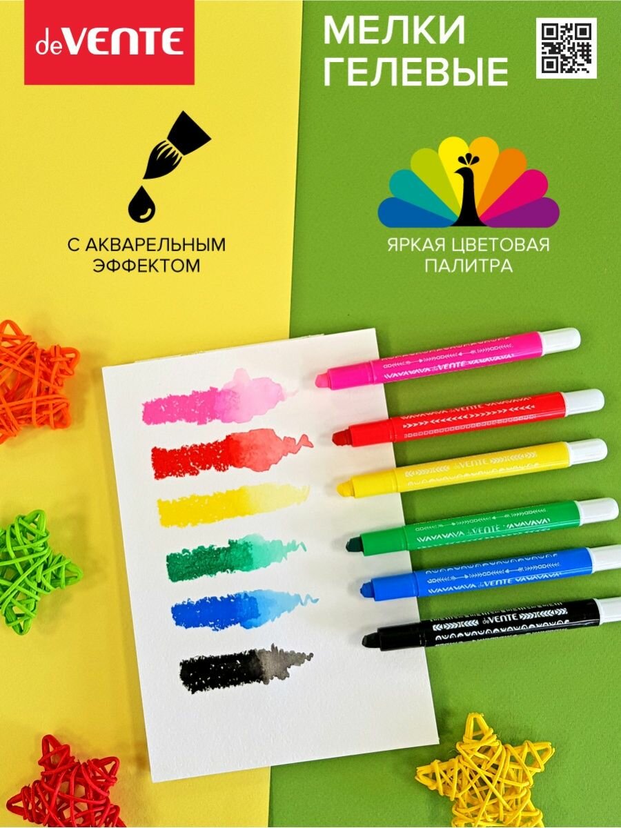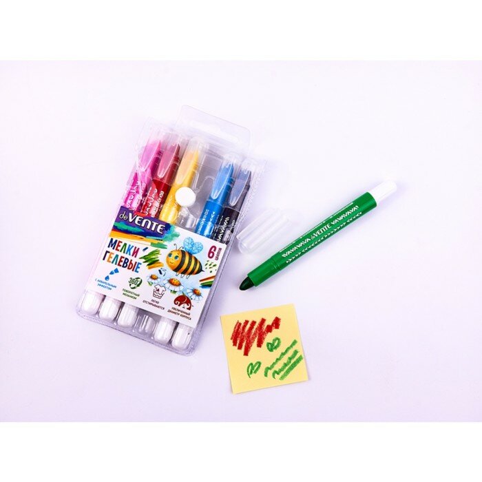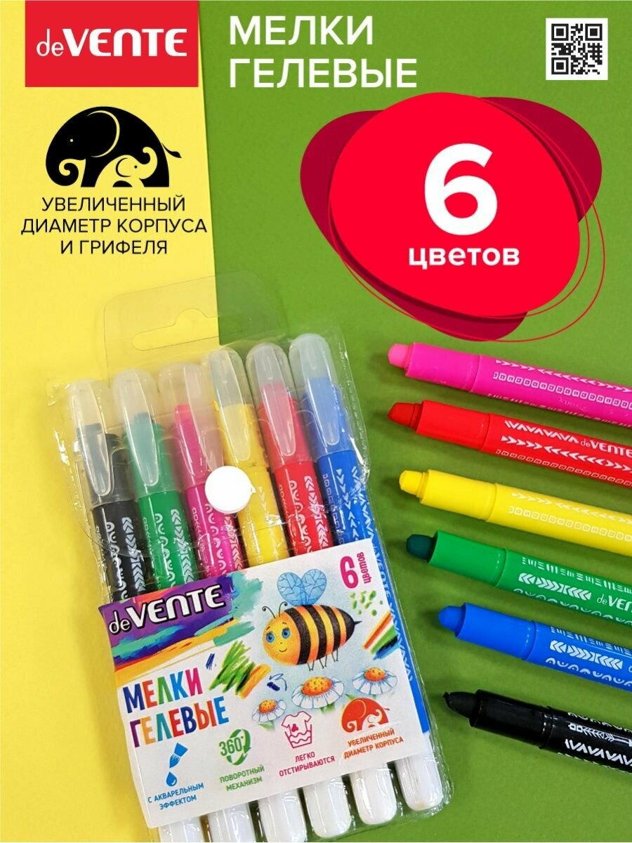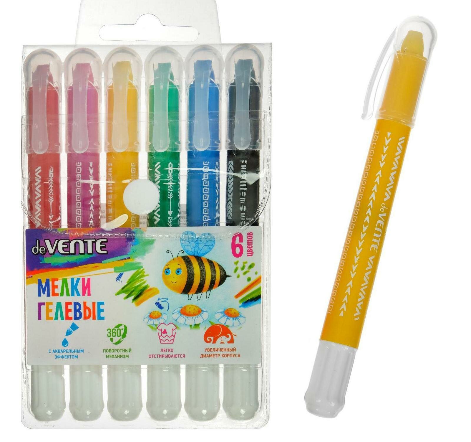 Мелки гелевые deVENTE 6 цветов, супермягкие, акварельные, поворотный механизм, блистер (6829019)