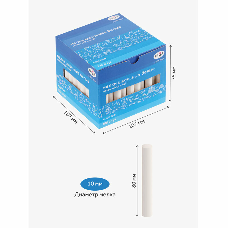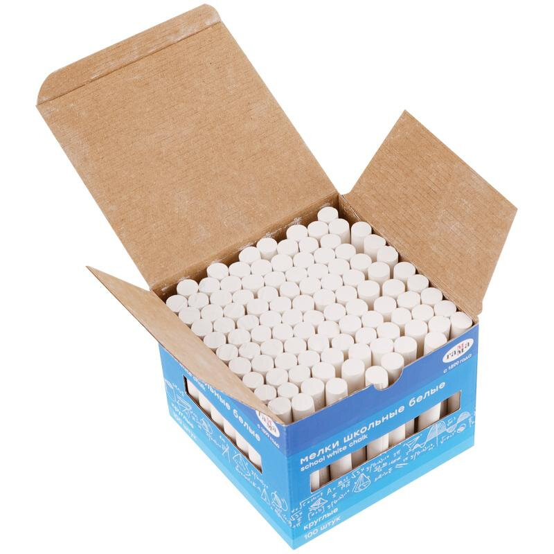 Мелки школьные Гамма, белые, 100шт, мягкие, круглые, картонная коробка