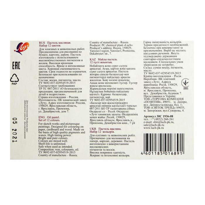 Пастель масляная "Люкс" 12 цв (круглая) интересное: