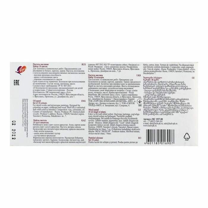 Набор масляной пастели 18 цв. Луч Люкс, 30С 1937-08 интересное: