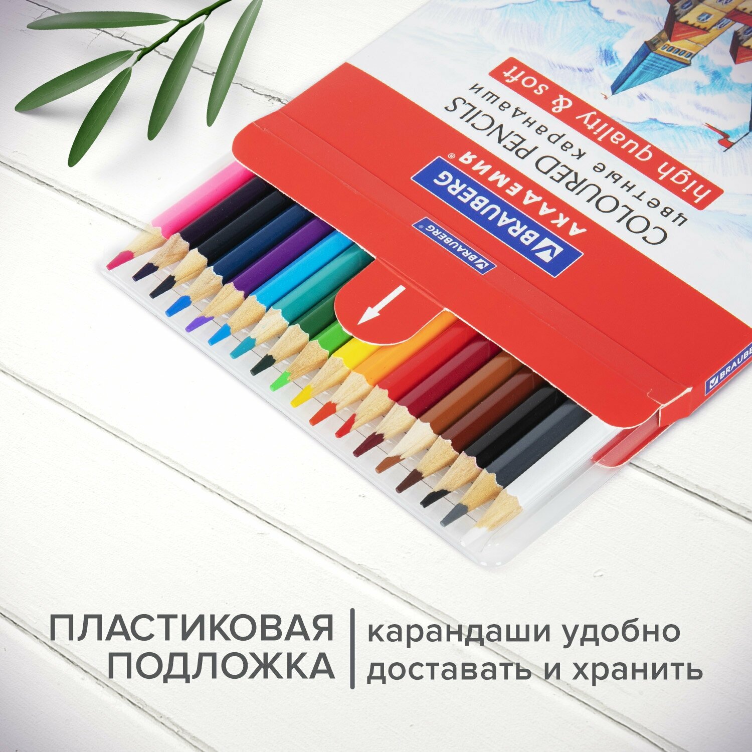 Купить Карандаши деревянные цветные для рисования мягкие Brauberg Академия, 24 цвета, шестигранные, грифель 3 мм, натуральное дерево, 181866