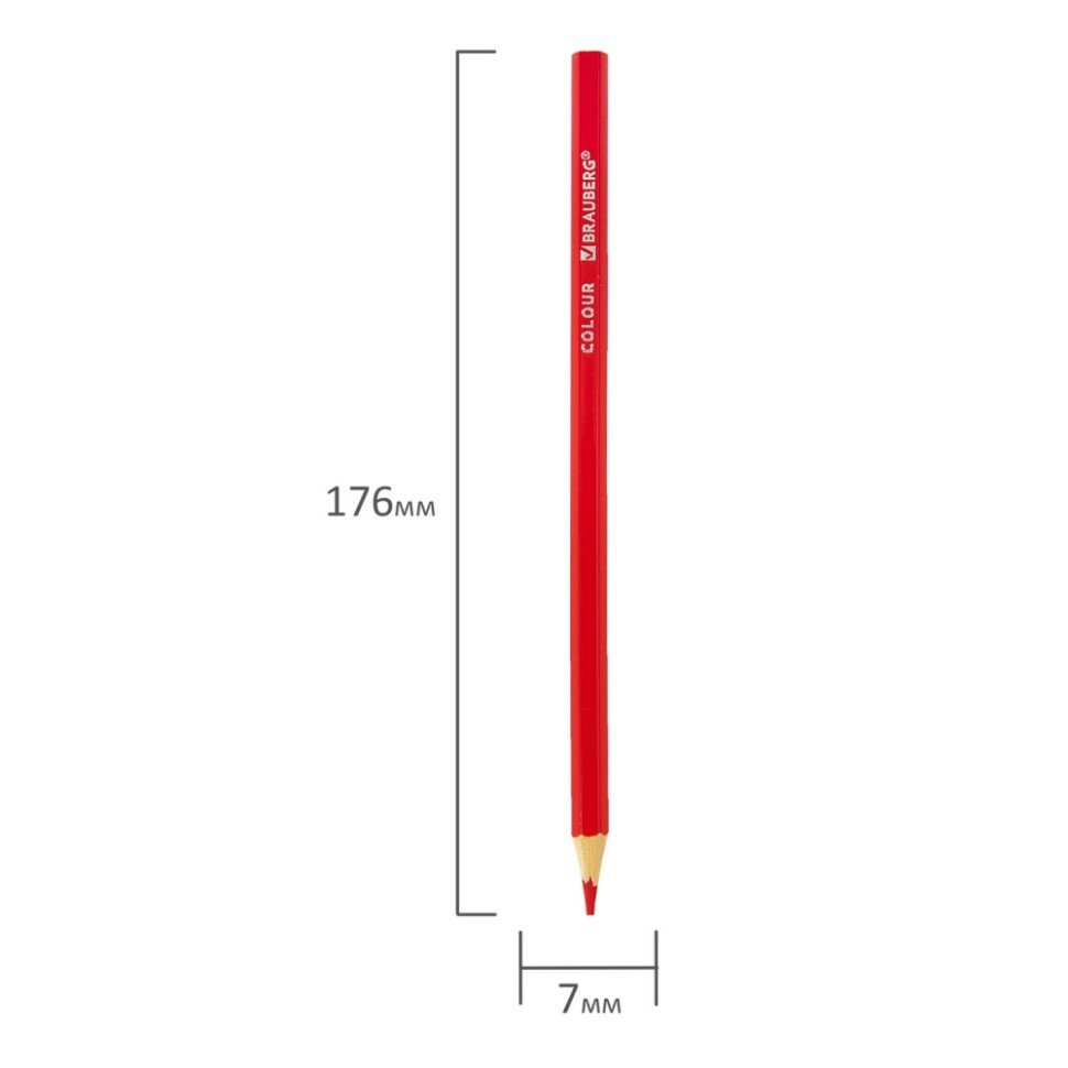 Карандаши цветные 24 цвета Brauberg Академия (L=176мм, 6гр, d=3мм, мягкие) (181866, 6 уп.