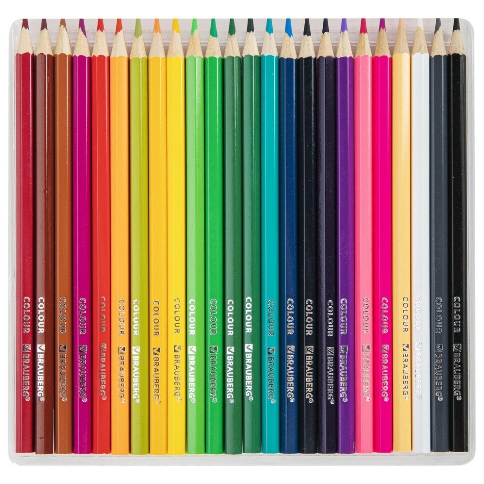 Купить Карандаши цветные мягкие BRAUBERG академия 24 цвета шестигранные грифель 3 мм, 3 шт
