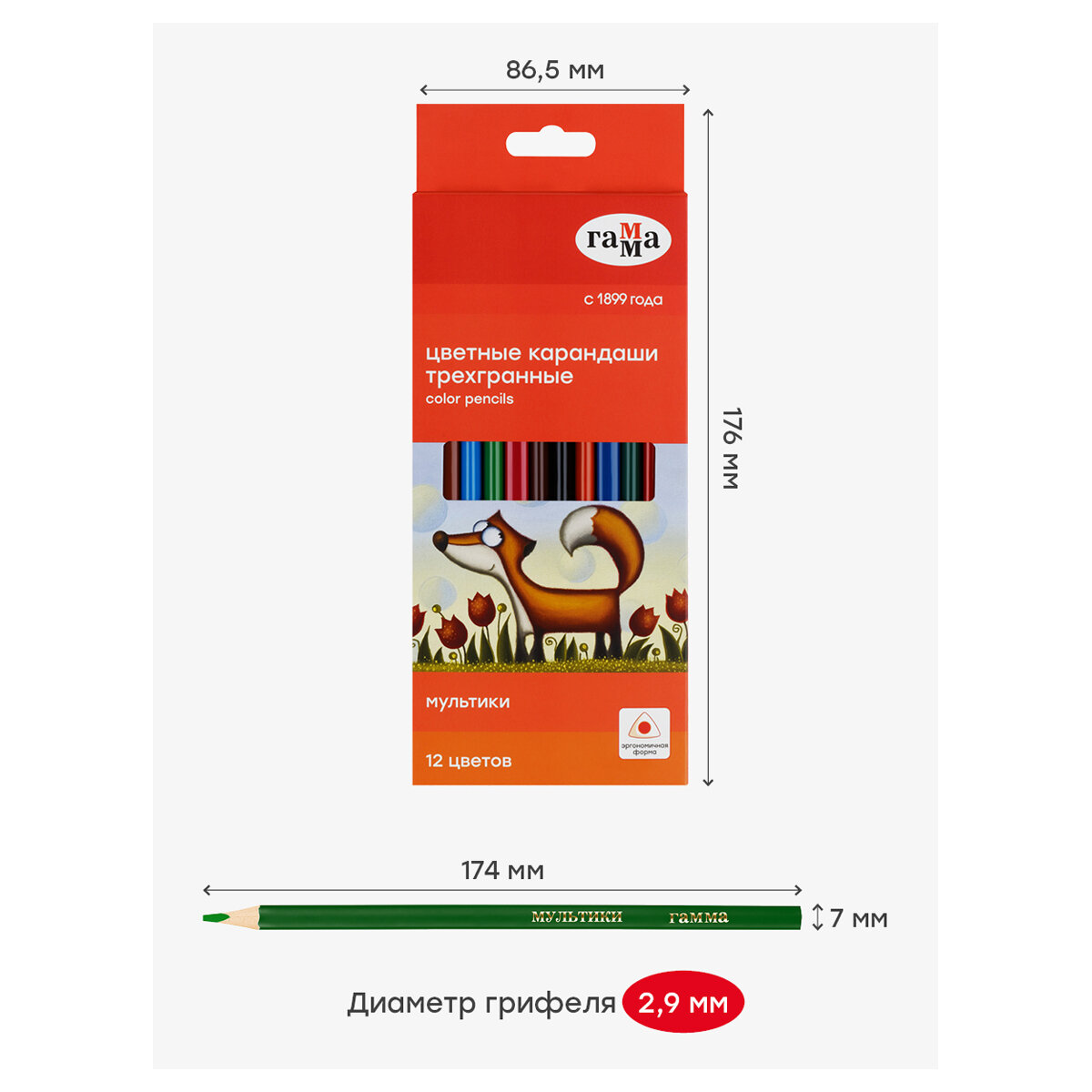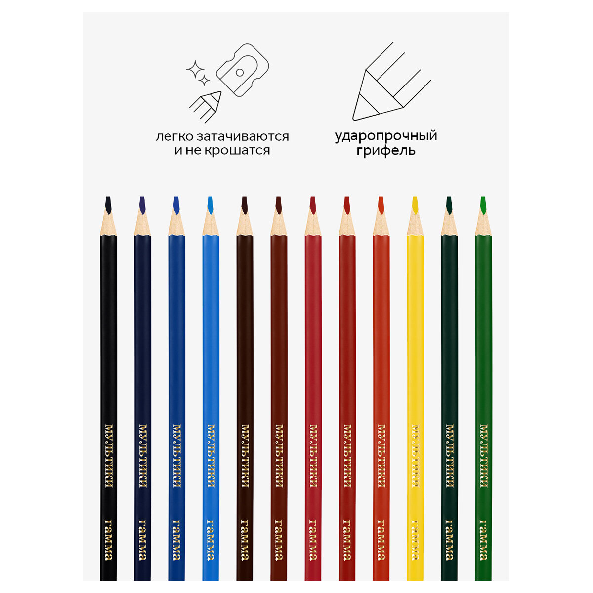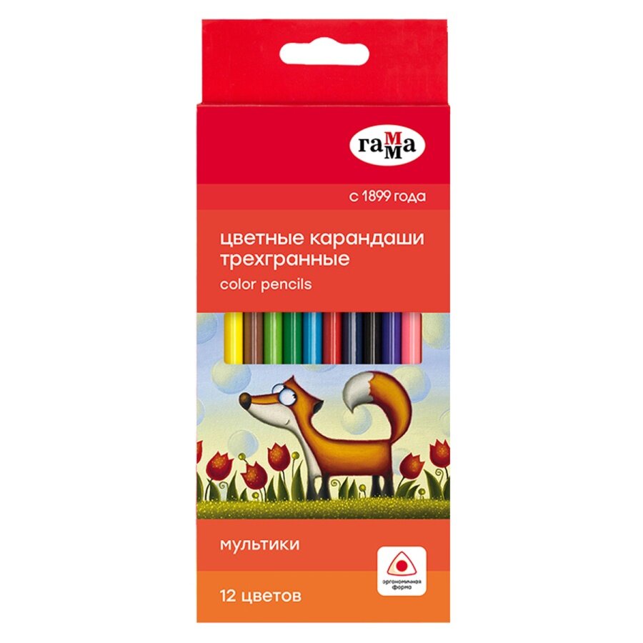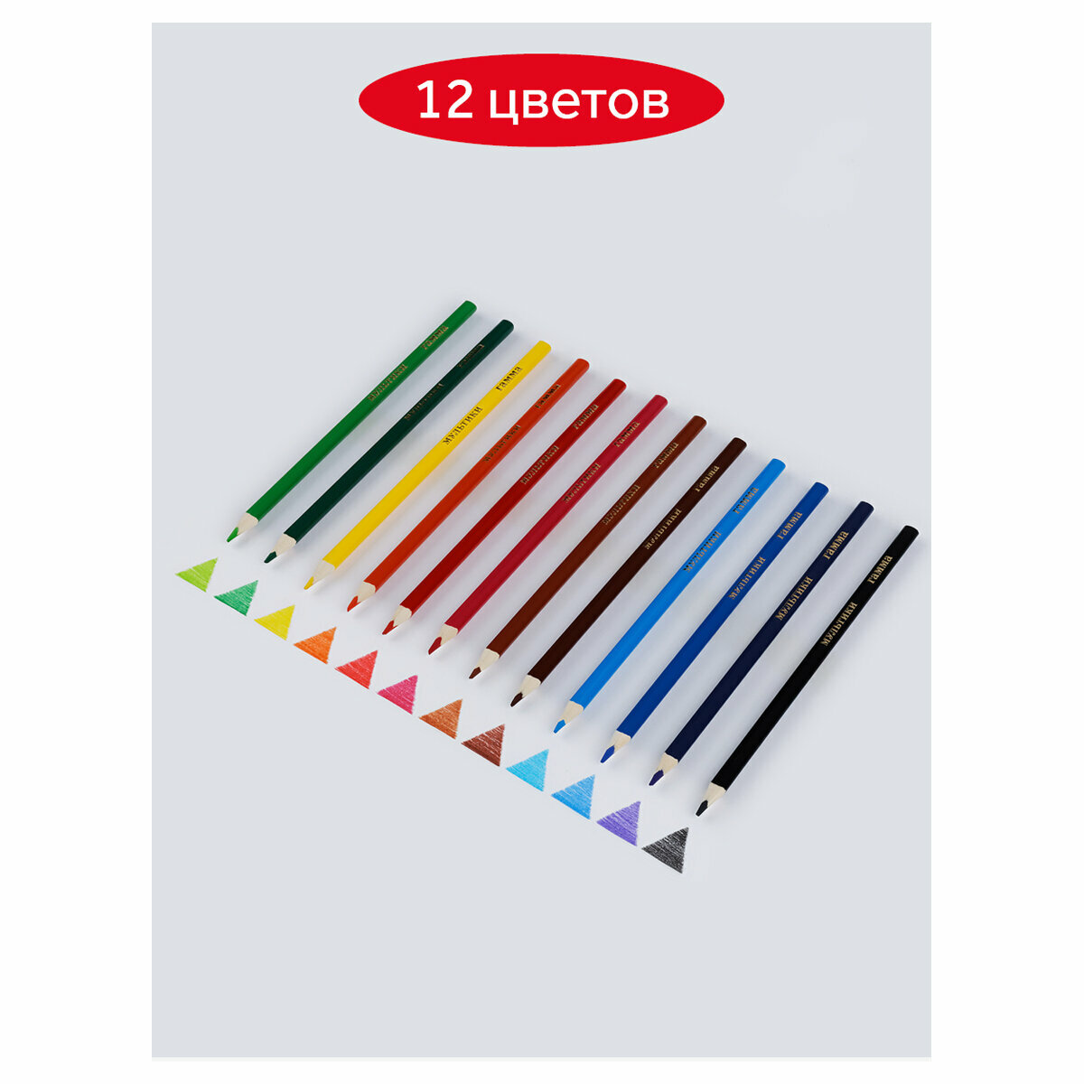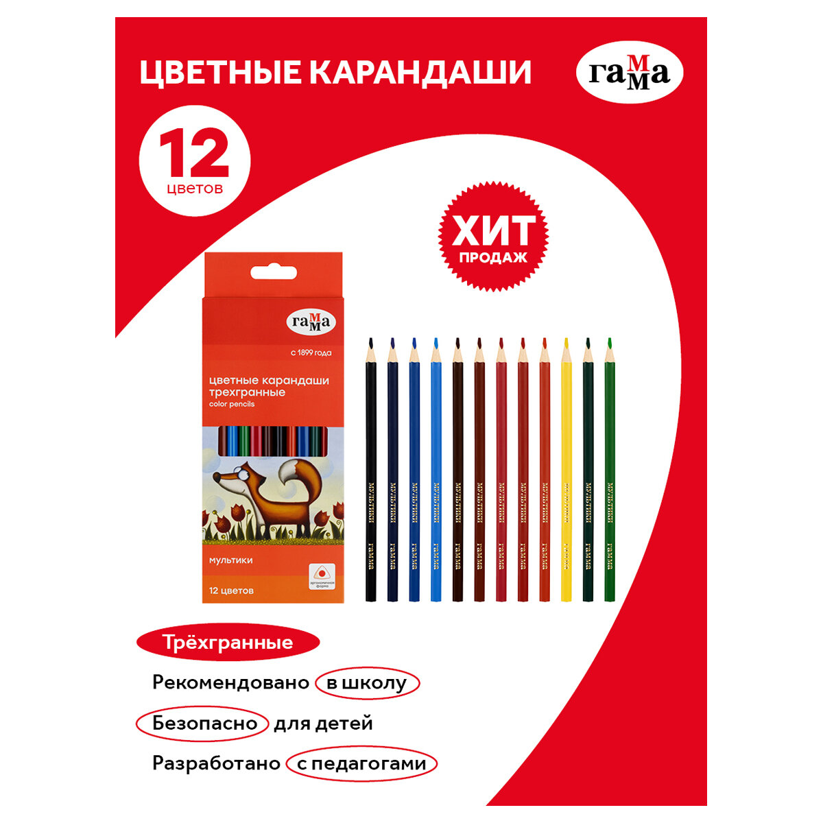 Цветные карандаши для школы 12 цветов, трехгранные / Набор цветных карандашей для рисования школьный Гамма "Мультики" интересное: