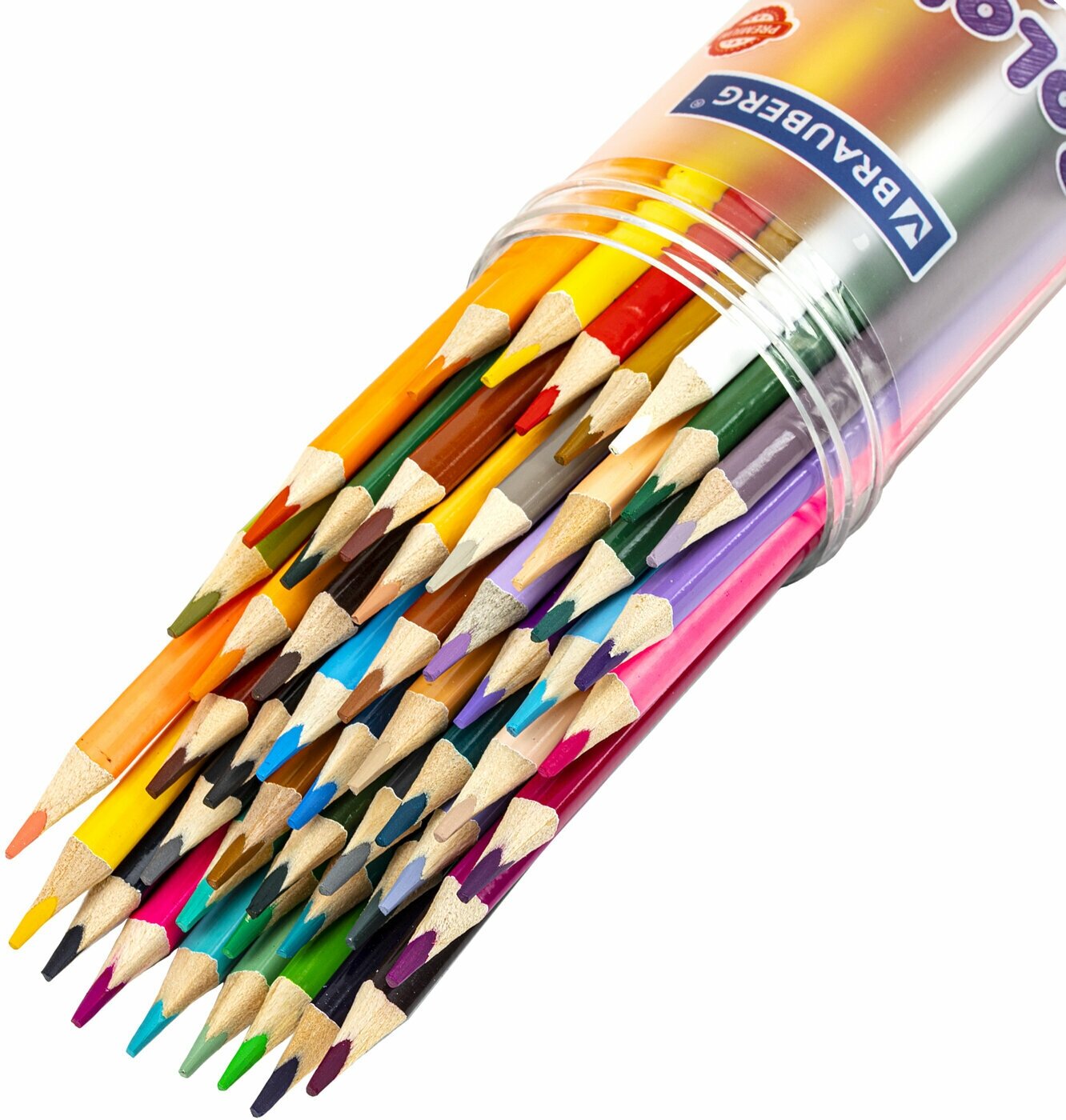 Карандаши цветные BRAUBERG PREMIUM 50 цветов в тубе, трехгранные, грифель 3,3 мм, натуральное дерево, 181935