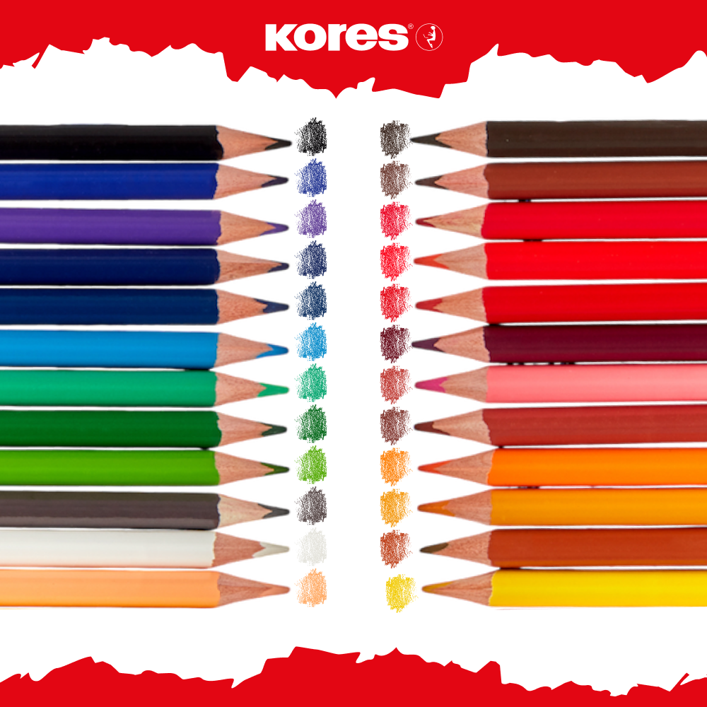 Купить Карандаши цветные Kores, трехгранные, толщина грифеля 2,9 мм, набор 24 цвета+точилка