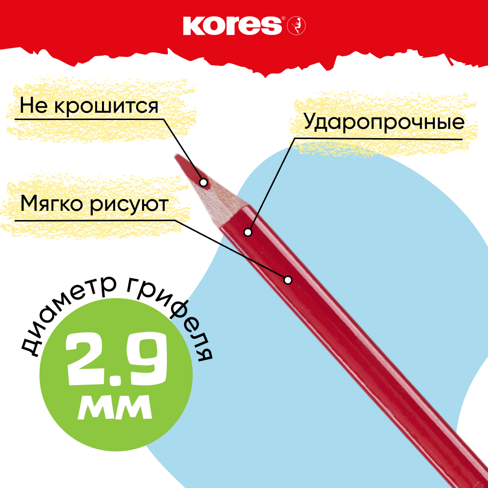 Карандаши цветные Kores, трехгранные, толщина грифеля 2,9 мм, набор 24 цвета+точилка интересное: