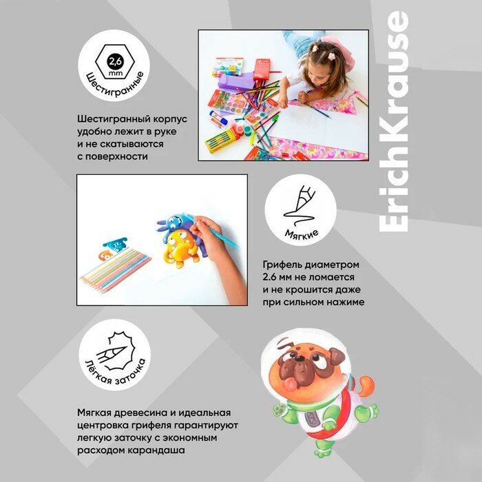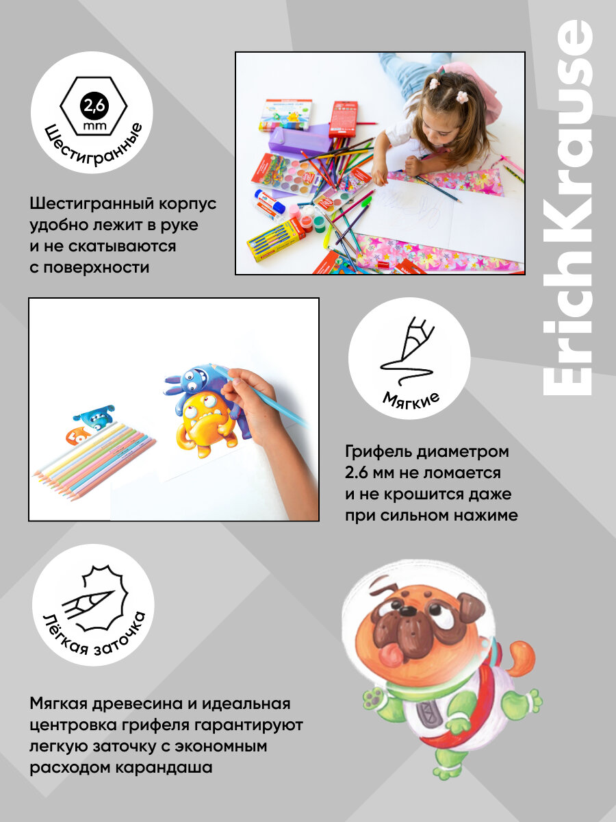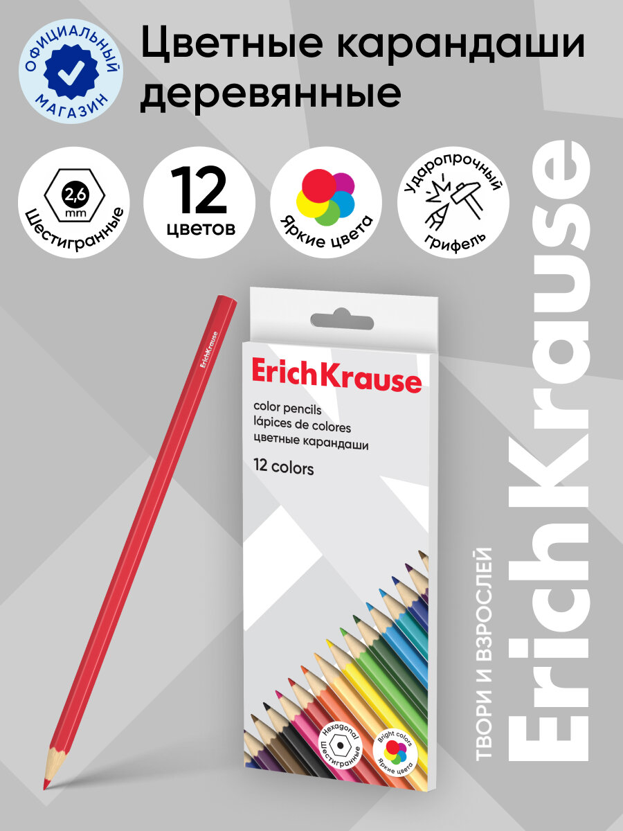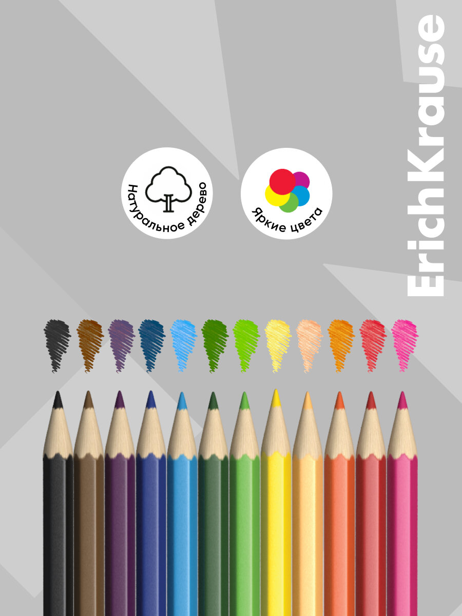 Цветные карандаши шестигранные ErichKrause Basic 12 цветов интересное: